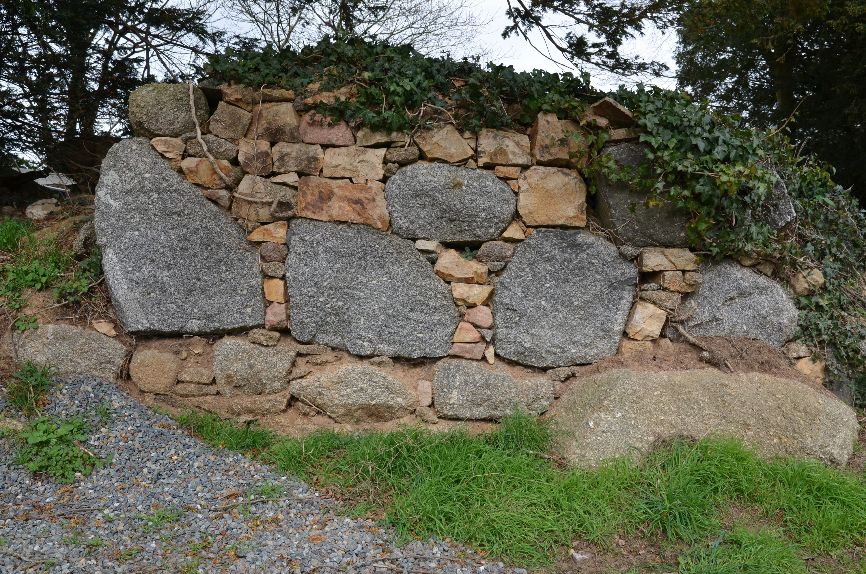 Ploubezre, Capikern : parement de mur de talus utilisant de gros blocs de granite et remplissage des vides en moellonsImmatriculation