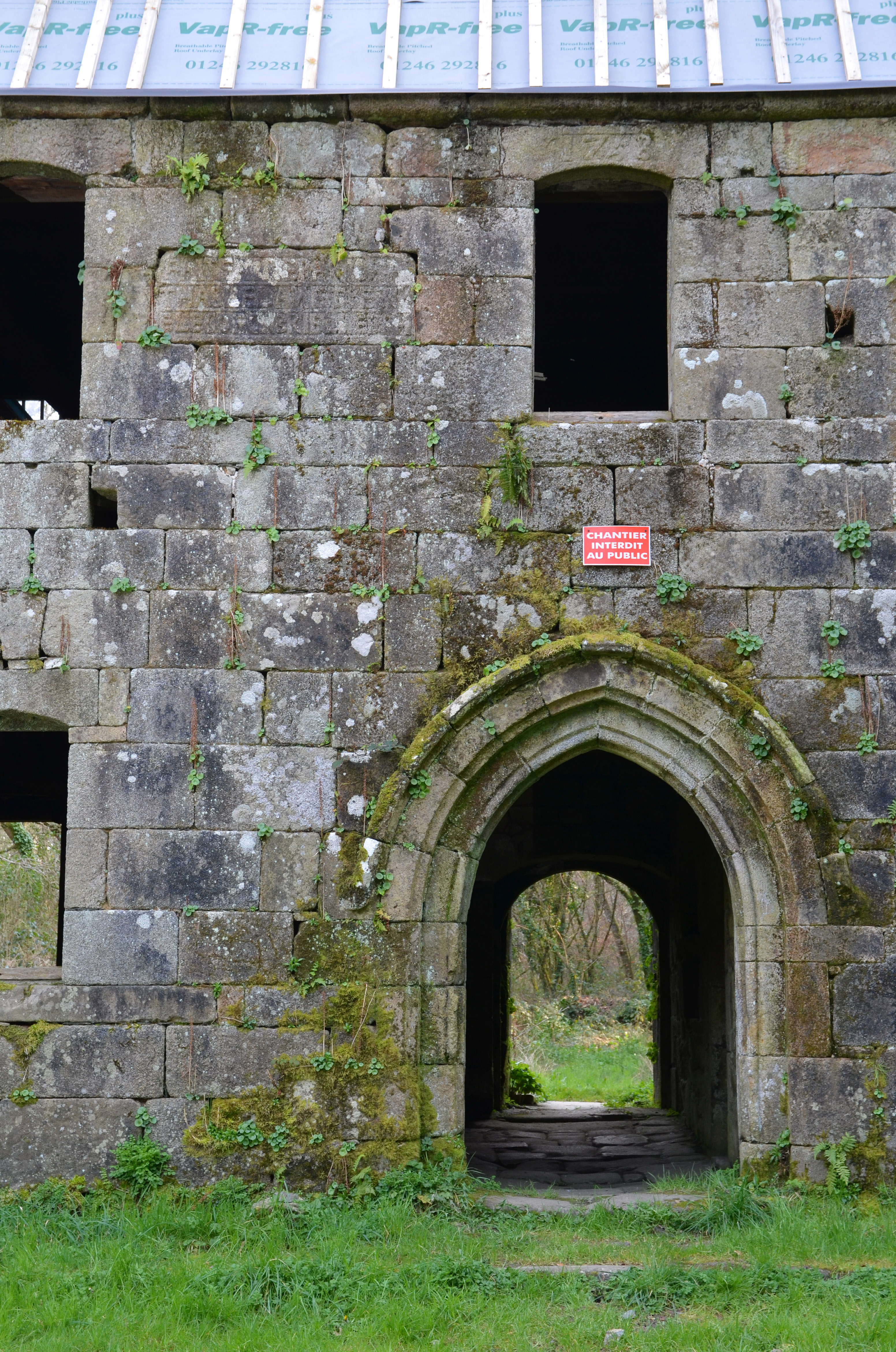Logis du moulin, élévation orientée vers le nord, détail de la travée centrale. L'édifice est daté par millésime de 1758 mais remploie des éléments anciens comme cette porteImmatriculation