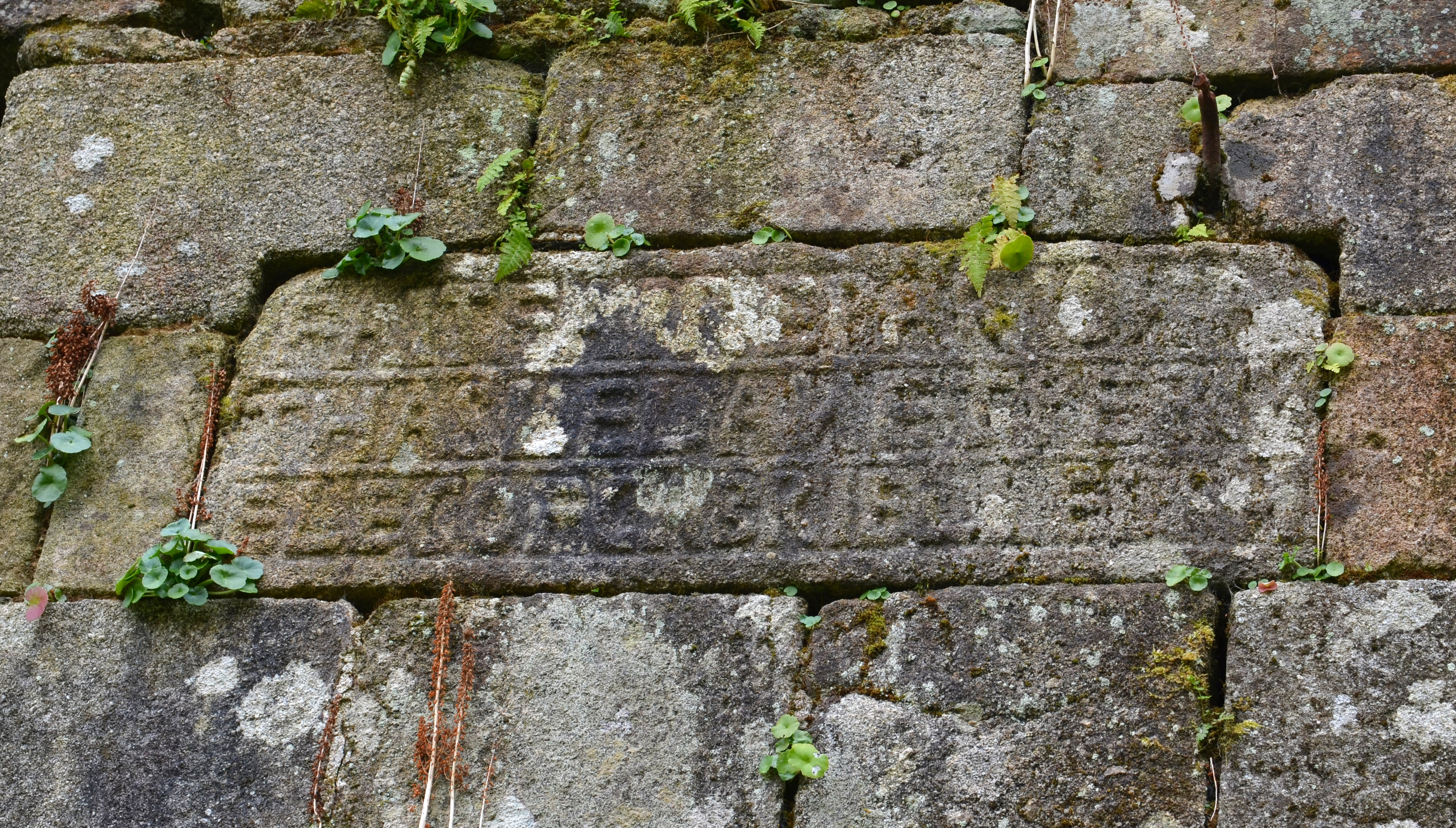 Logis du moulin, travée centrale, détail de l'inscriptionImmatriculation