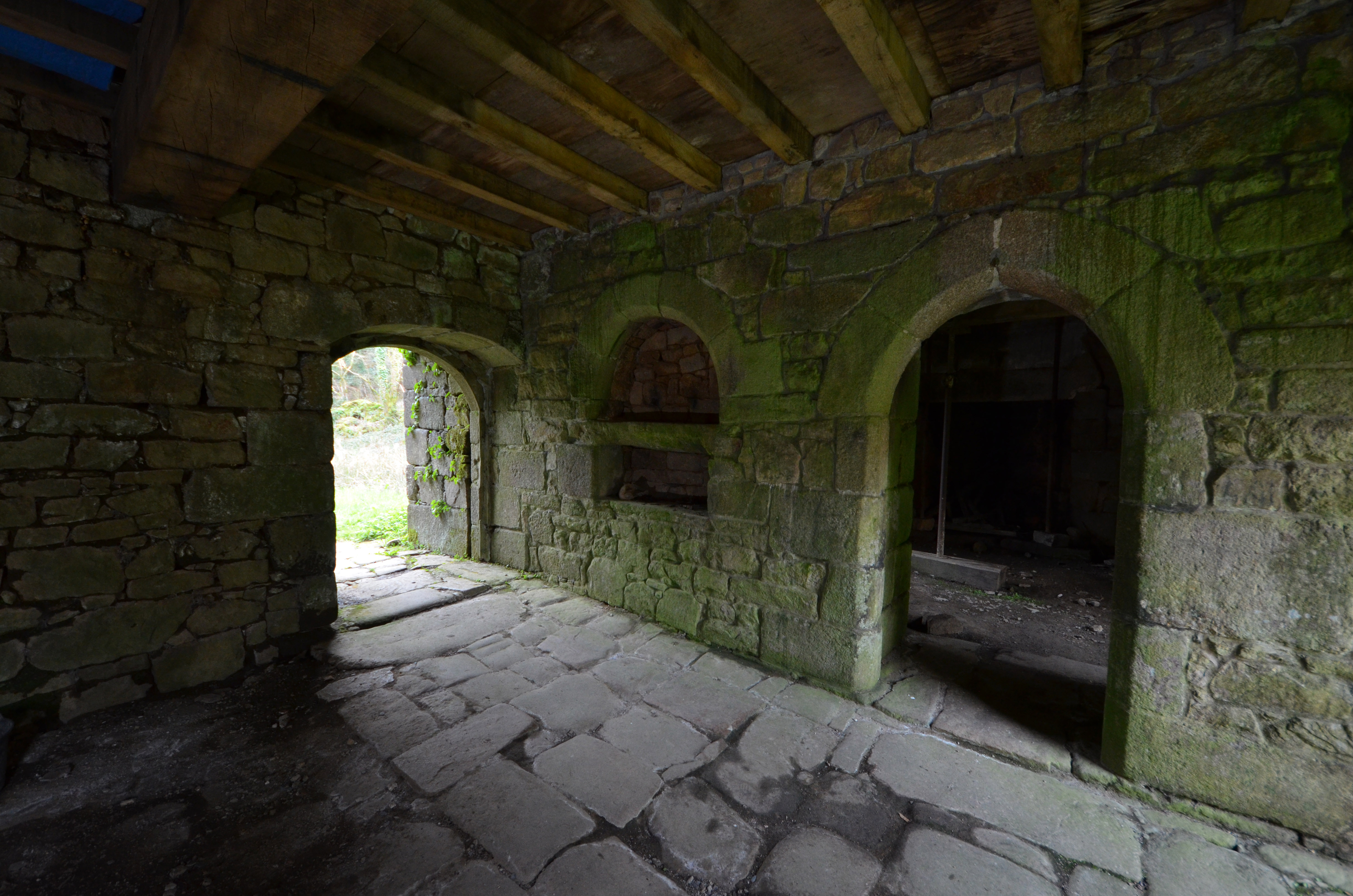 Logis du moulin, vue intérieure, placard mural et porte percée dans le mur de refendImmatriculation