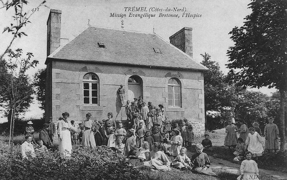 Trémel, Uzel : Mission évangélique bretonne, bâtiment de la mission protestante désigné comme hospice, carte postale (collection particulière)Immatriculation