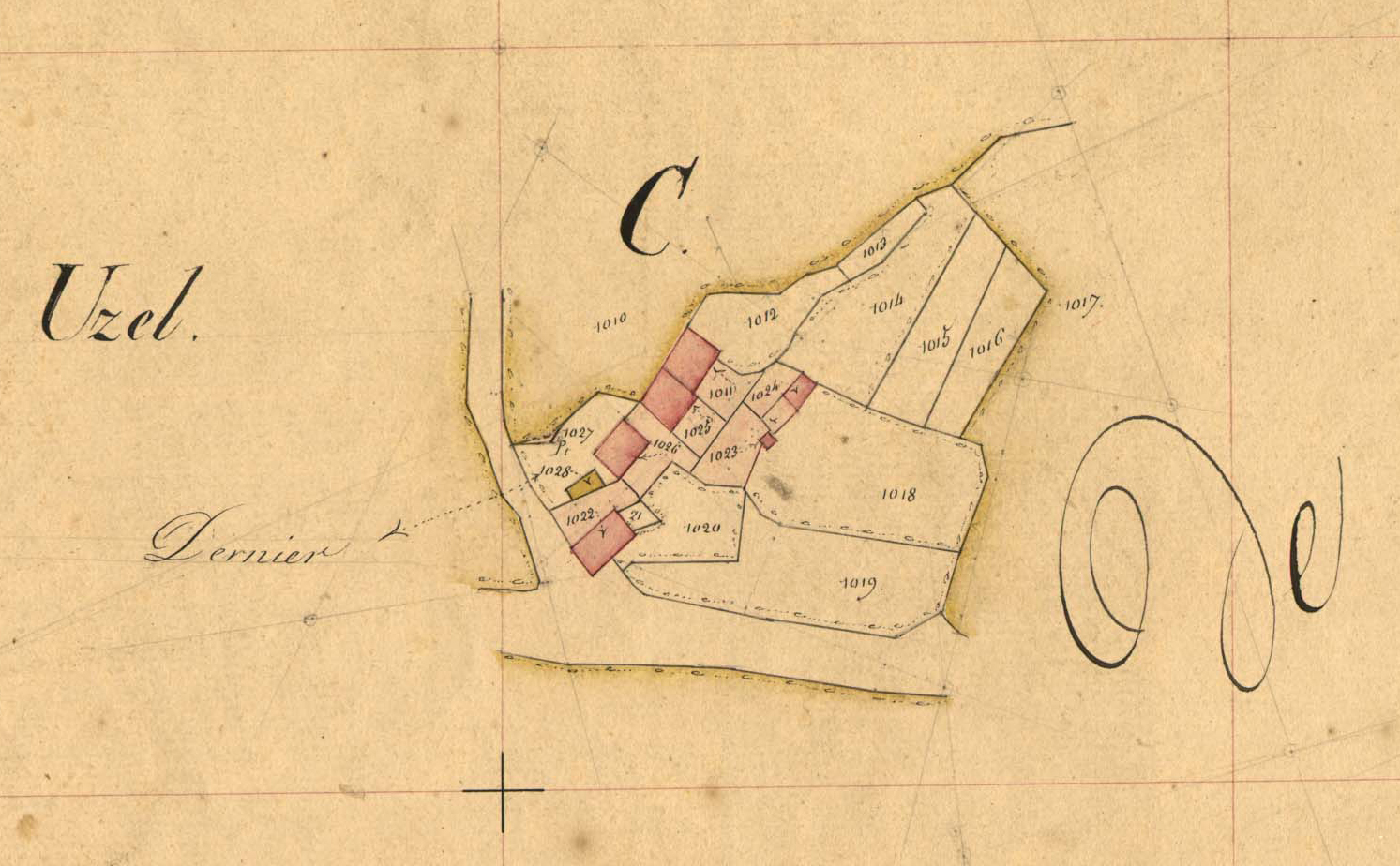 Extrait du cadastre ancien de la commune de Trémel, 1848 : UzelImmatriculation