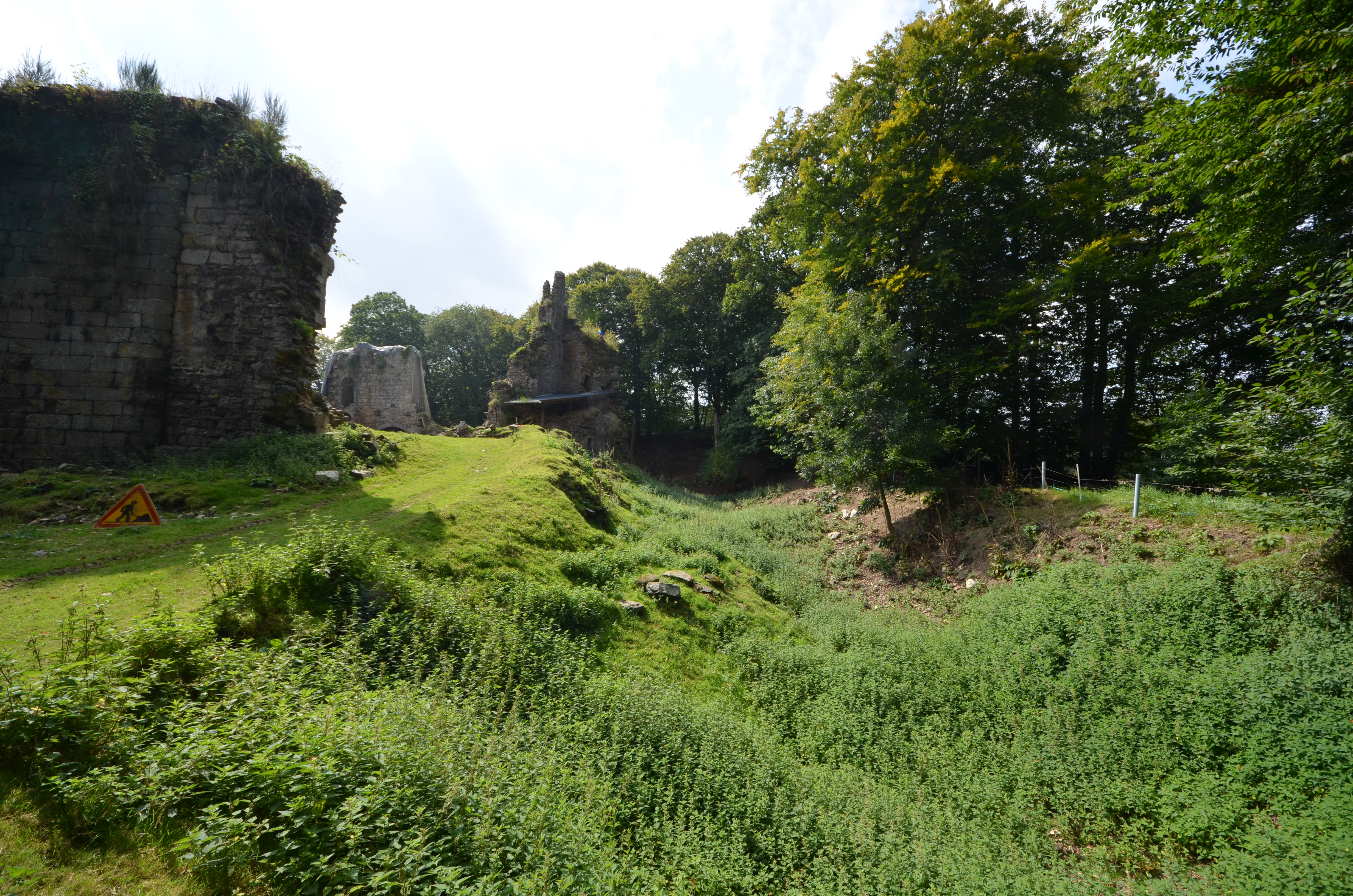 Ploubezre : château fort de Coat Frec, front nord (vestiges de l'ancien logis porte). Au premier plan : le fossé secImmatriculation