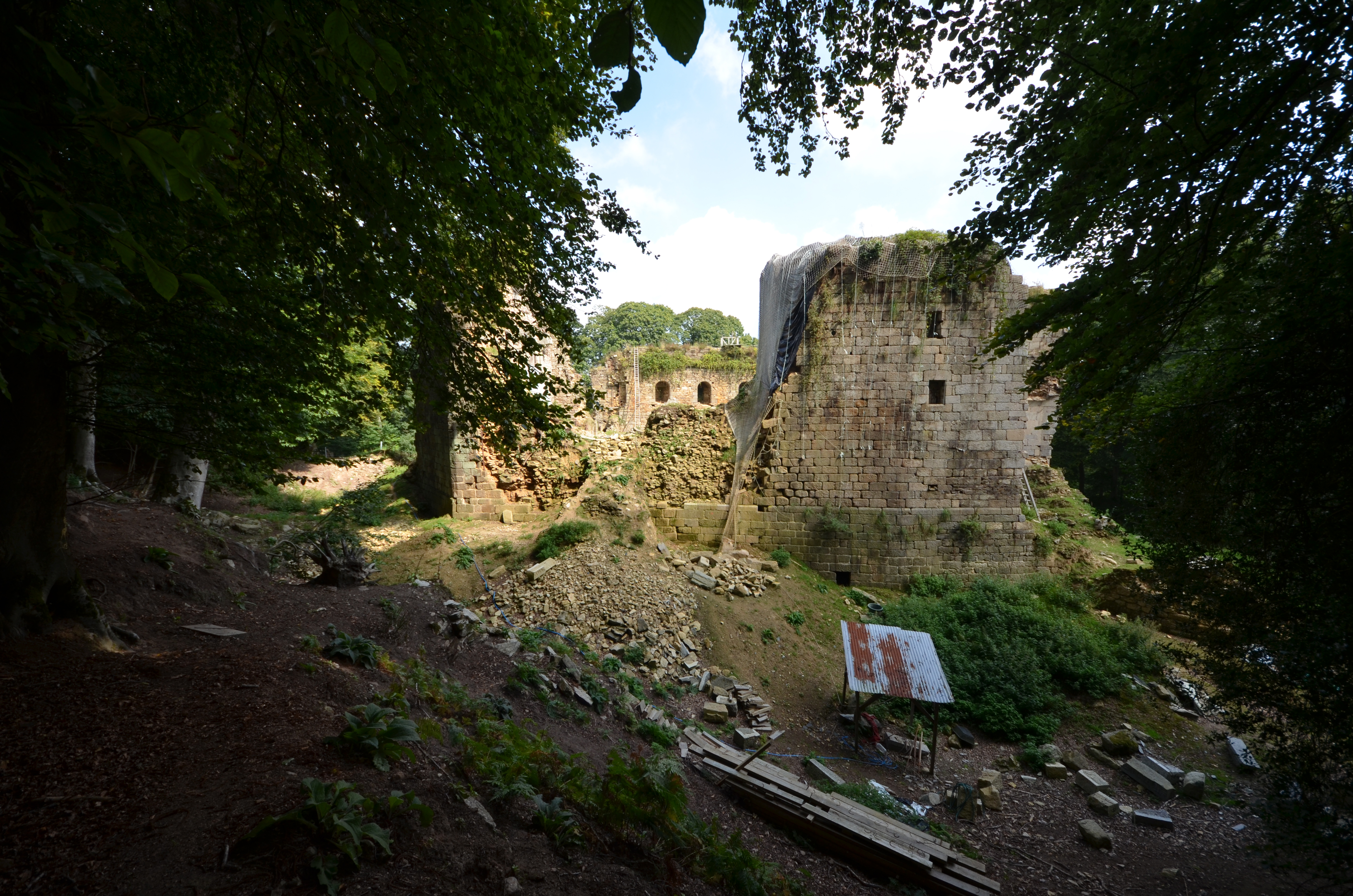 Ploubezre : château fort de Coat Frec, front ouest (cuisine et communs). Au premier plan : le chantier de restaurationImmatriculation