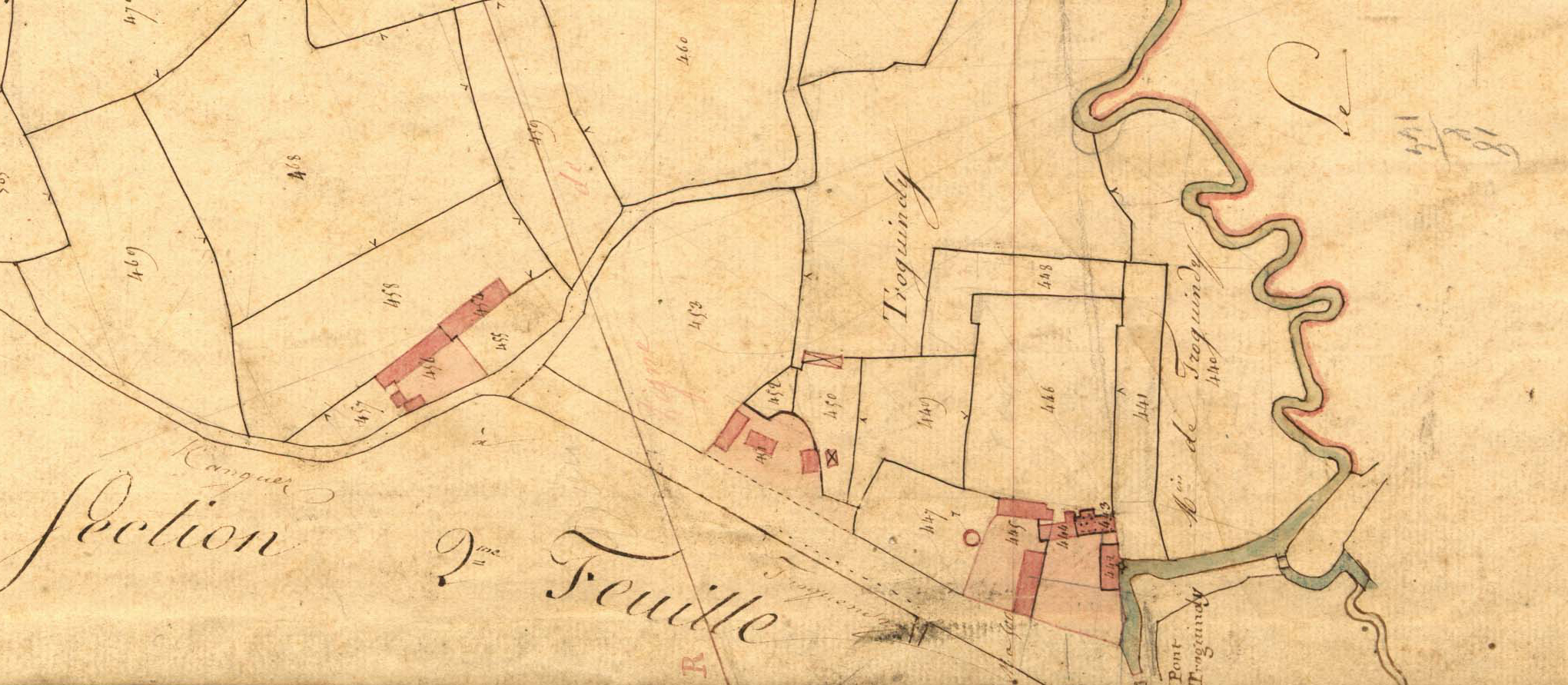 Extrait du cadastre ancien de la commune de Tonquédec, 1835 : manoir puis château de TroguindyImmatriculation
