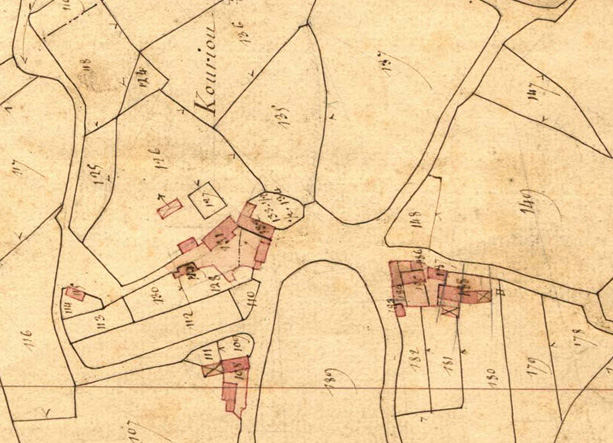Extrait du cadastre ancien de la commune de Tonquédec, 1835 : Kerouriou (Kerboriou)Immatriculation