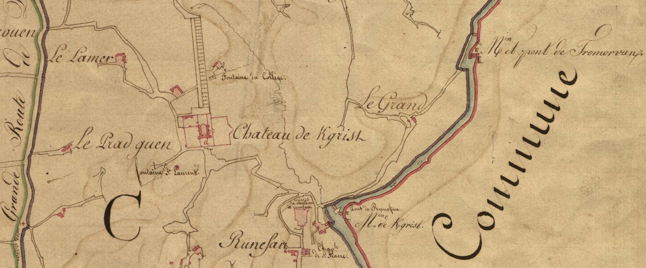 Extrait du tableau d'assemblage du cadastre ancien de la commune de Ploubezre, 1826 : environs du château de KergristImmatriculation