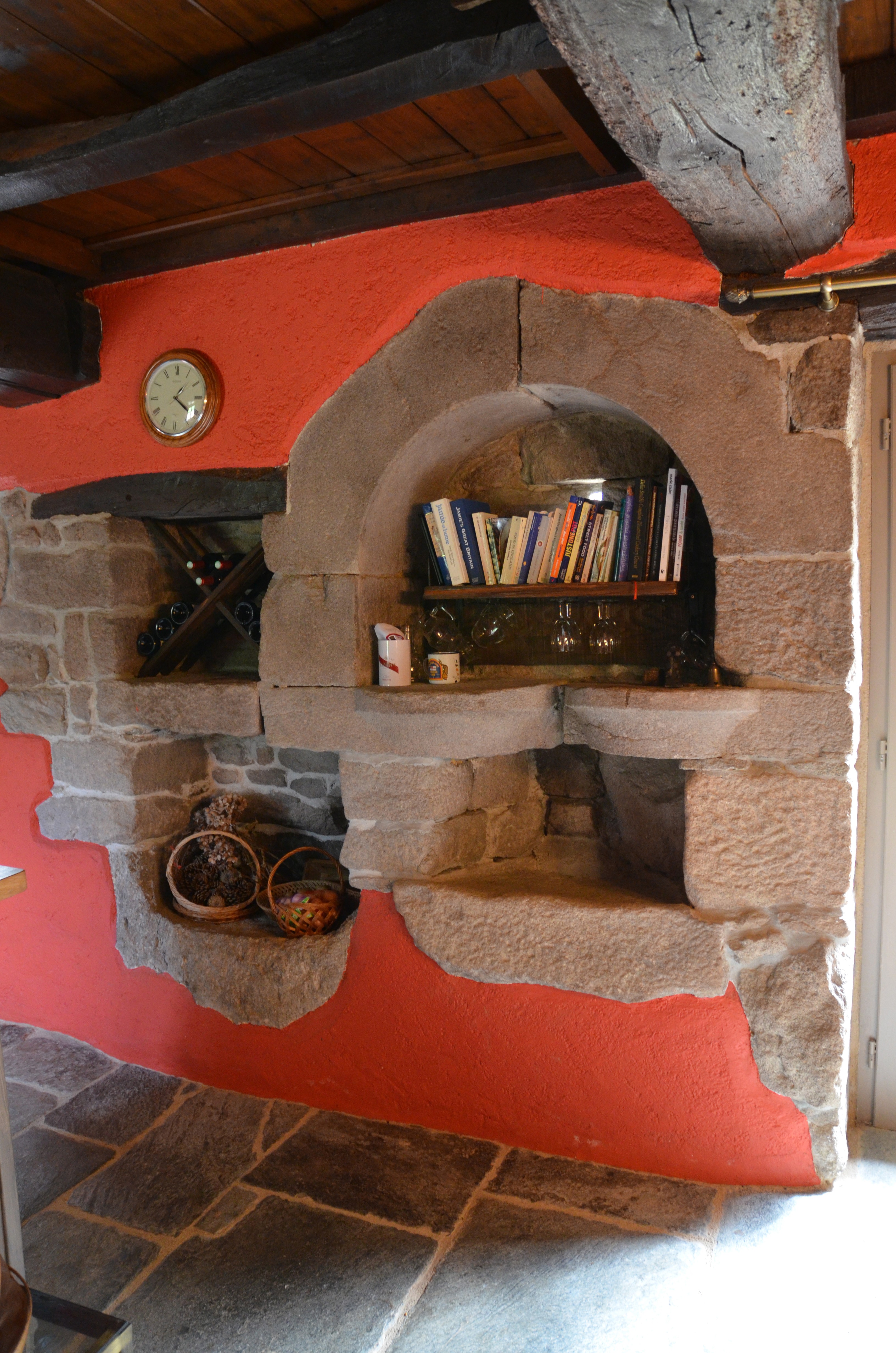 Trémel, Zan Logot : maison datée 1588, vue intérieure, rez-de-chaussée, saloir en granite (cassé), placard et évier murauxImmatriculation
