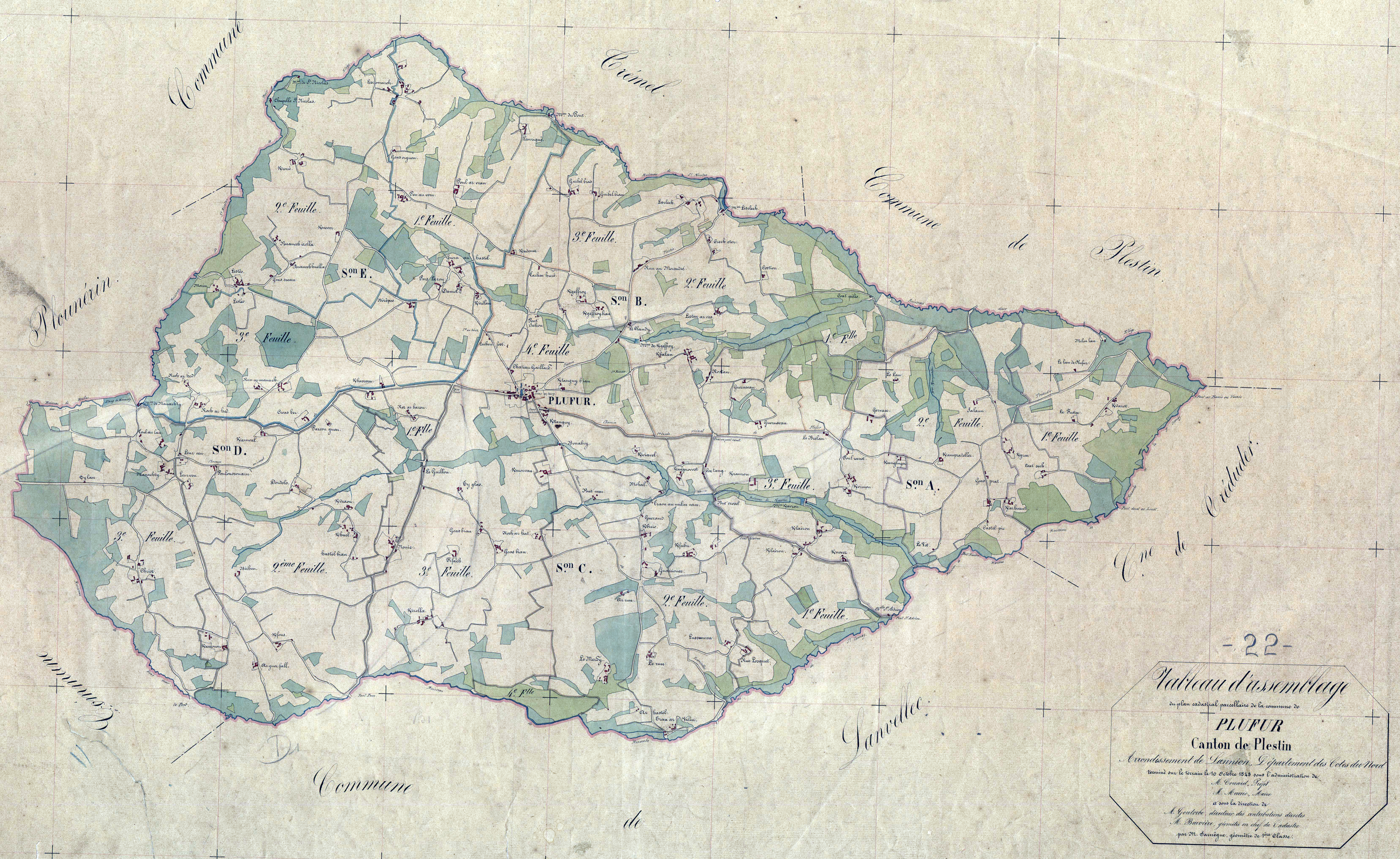 Tableau d'assemblage du cadastre ancien de la commune de Plufur, 1848Immatriculation
