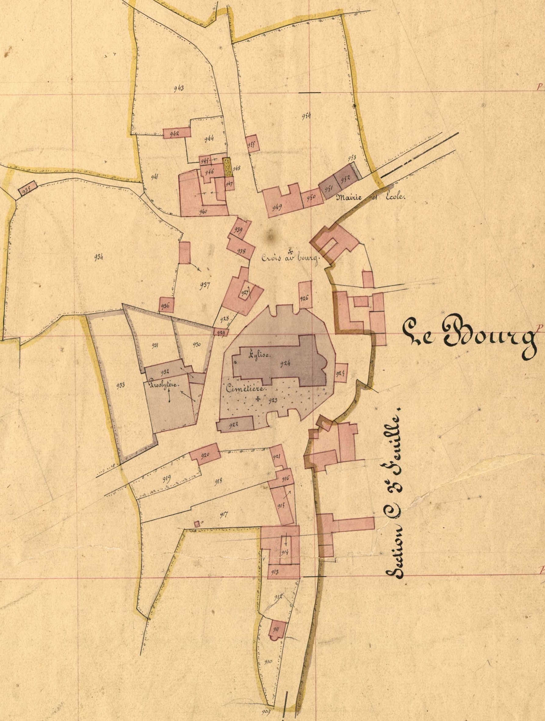 Extrait du cadastre ancien de la commune de Plufur, 1848 : le bourgImmatriculation