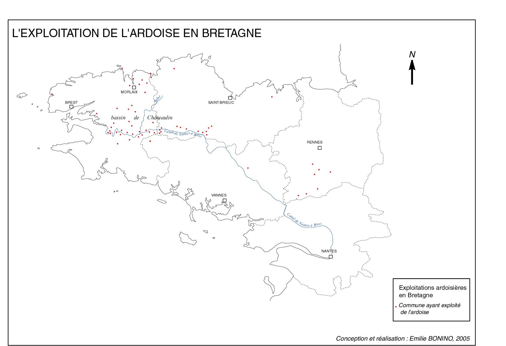 BONINO. E. L’exploitation de l’ardoise en Basse-Bretagne : Le Finistère (1810 à nos jours). Mémoire de Master 2 sous la direction de Jean-Yves Andrieux à l'université Rennes 2. 2004-2005.