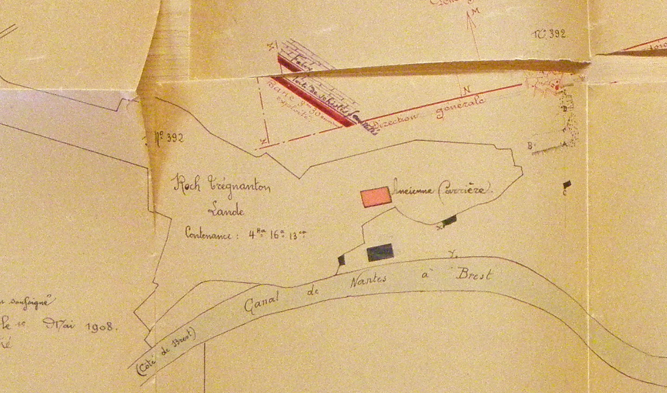 Détail d'un plan d'ensemble de l'ardoisière de Roch-Trégnanton en 1909Immatriculation
