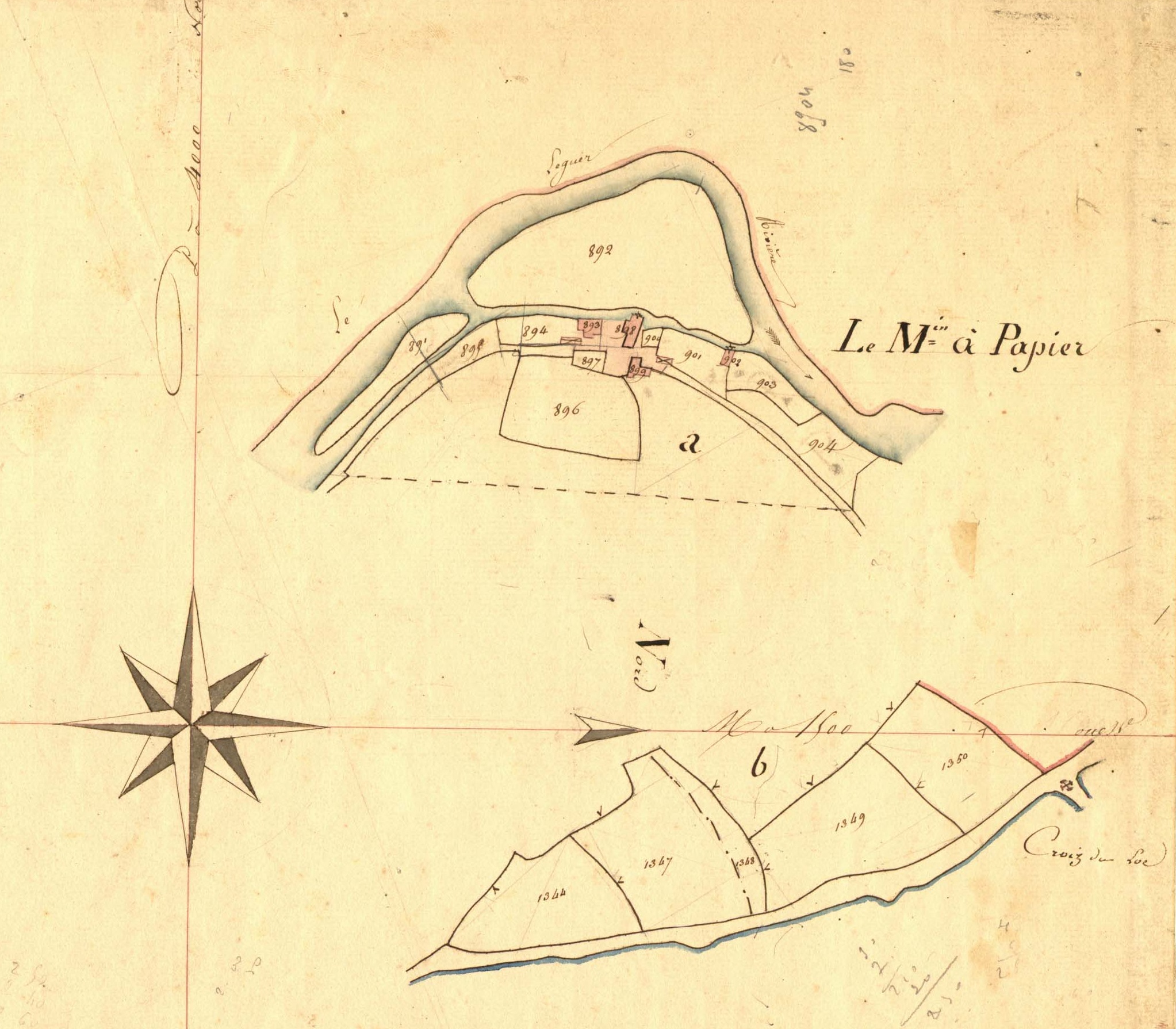 Cadastre de 1835, section B2 (détail). Moulin à papier de Kermeur.Immatriculation