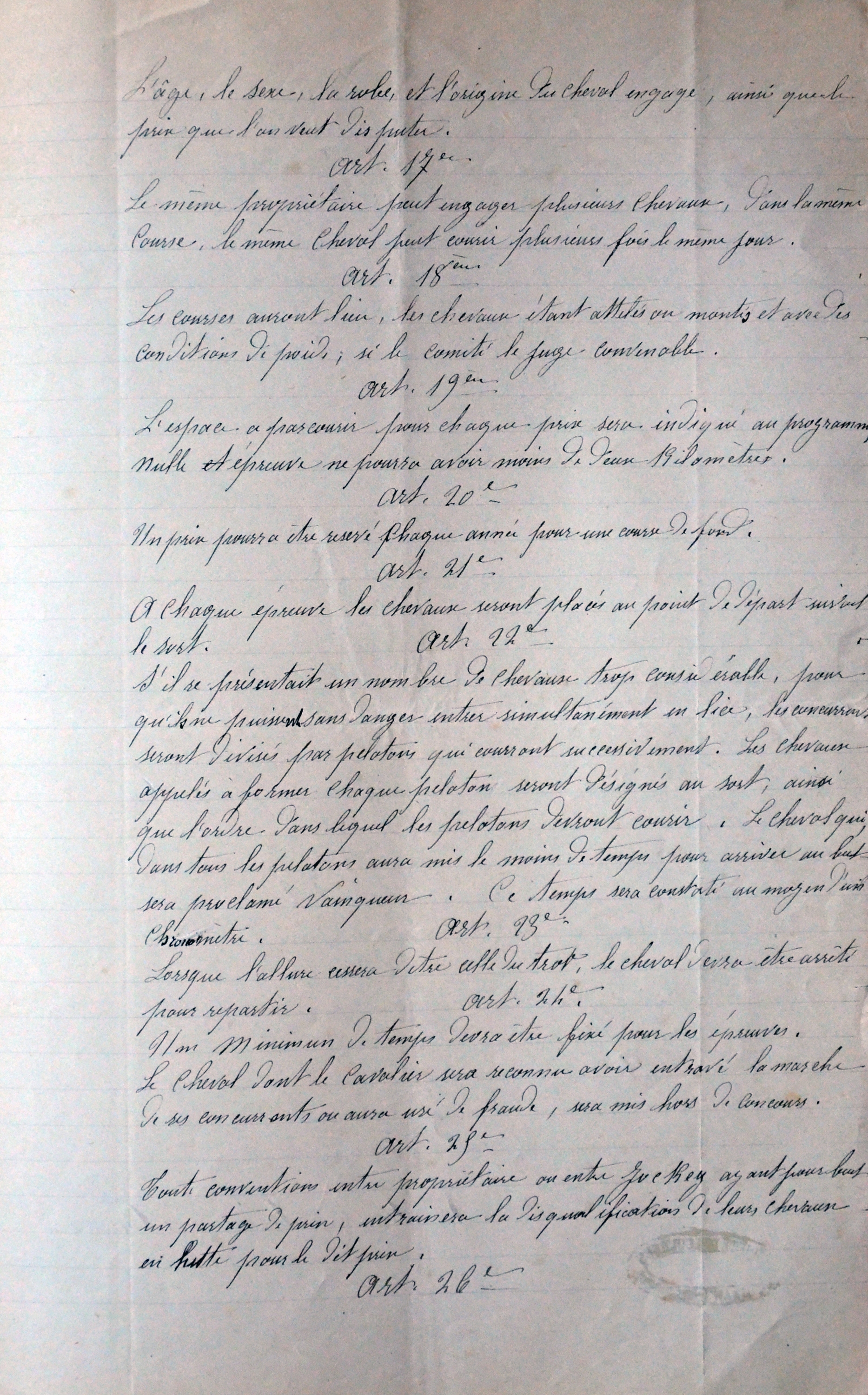 Société des courses de Dinan, statuts de 1862, page 3Immatriculation