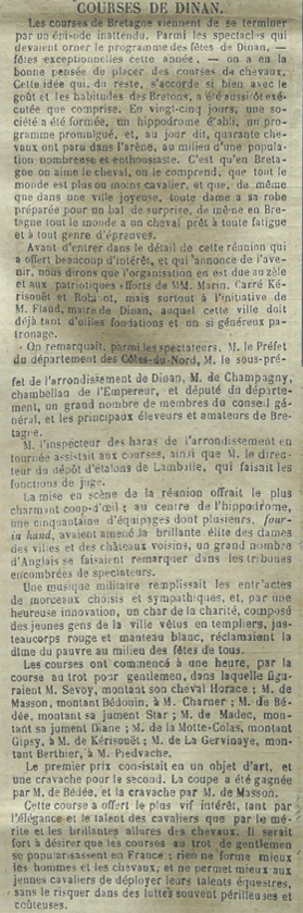 Hippodrome de l'Aublette, article du journal de l'Union malouine et dinannaise 31.01.1862 (page 1)Immatriculation