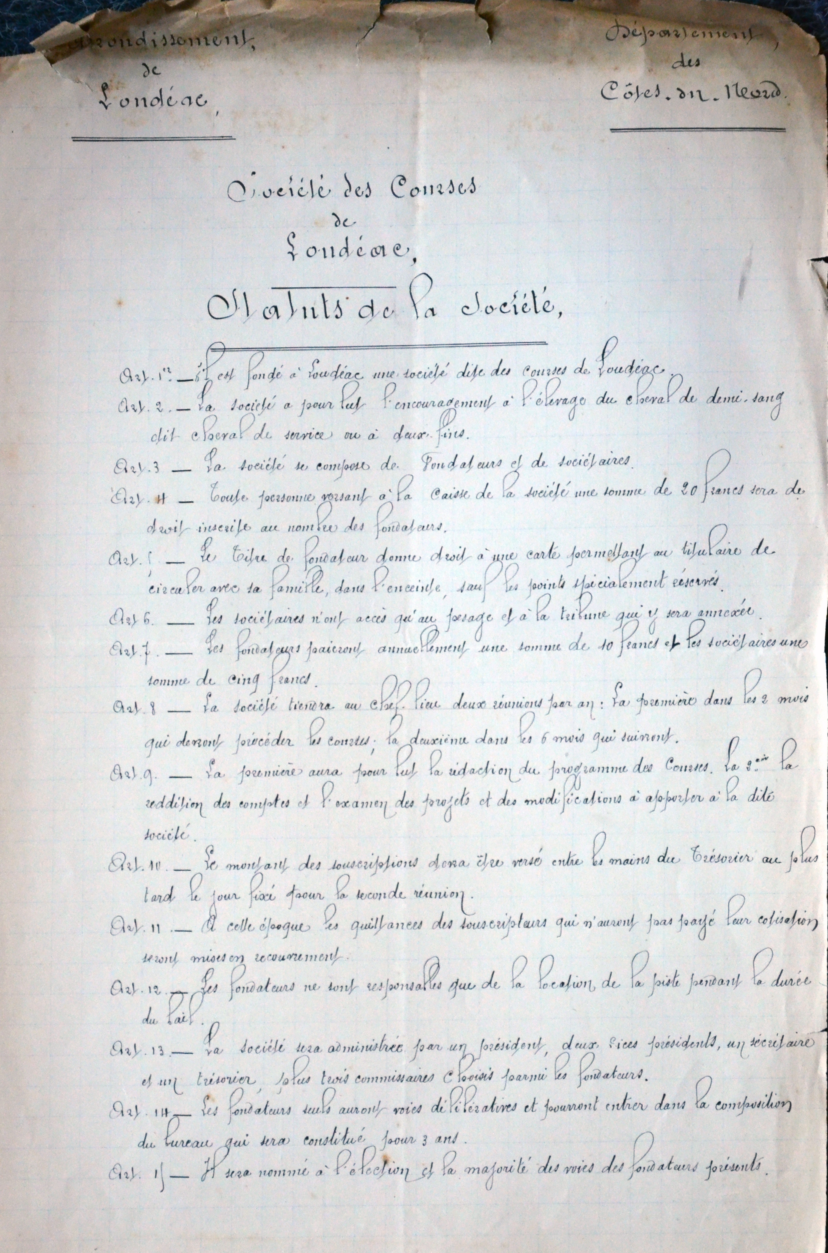 Les premiers statuts de la société des courses de Loudéac sont signés le 3 avril 1880 (source : AD22 7M517)