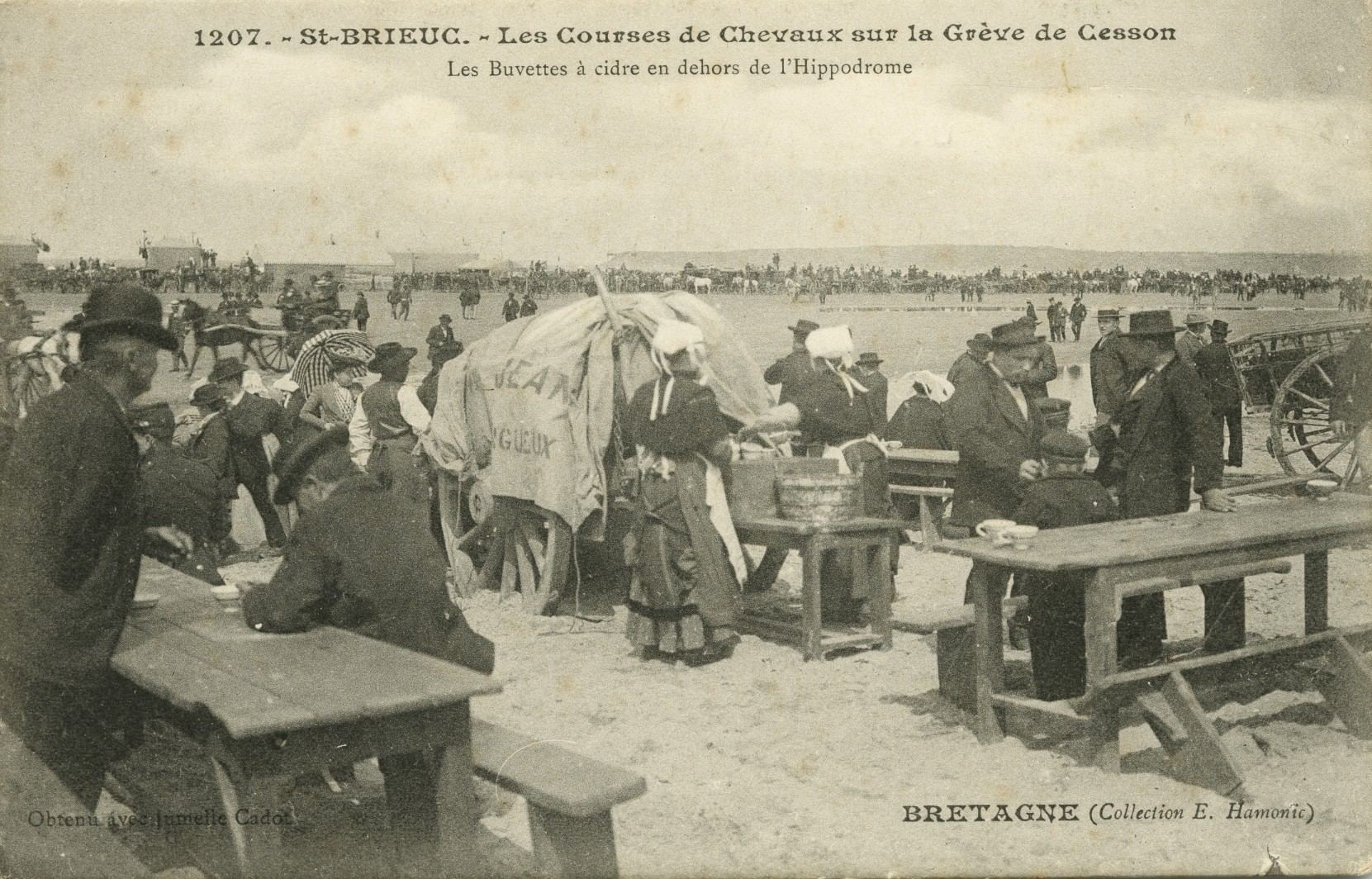 Carte postale, courses hippiques sur l'hippodrome marin de Cesson, la buvette à cidreImmatriculation
