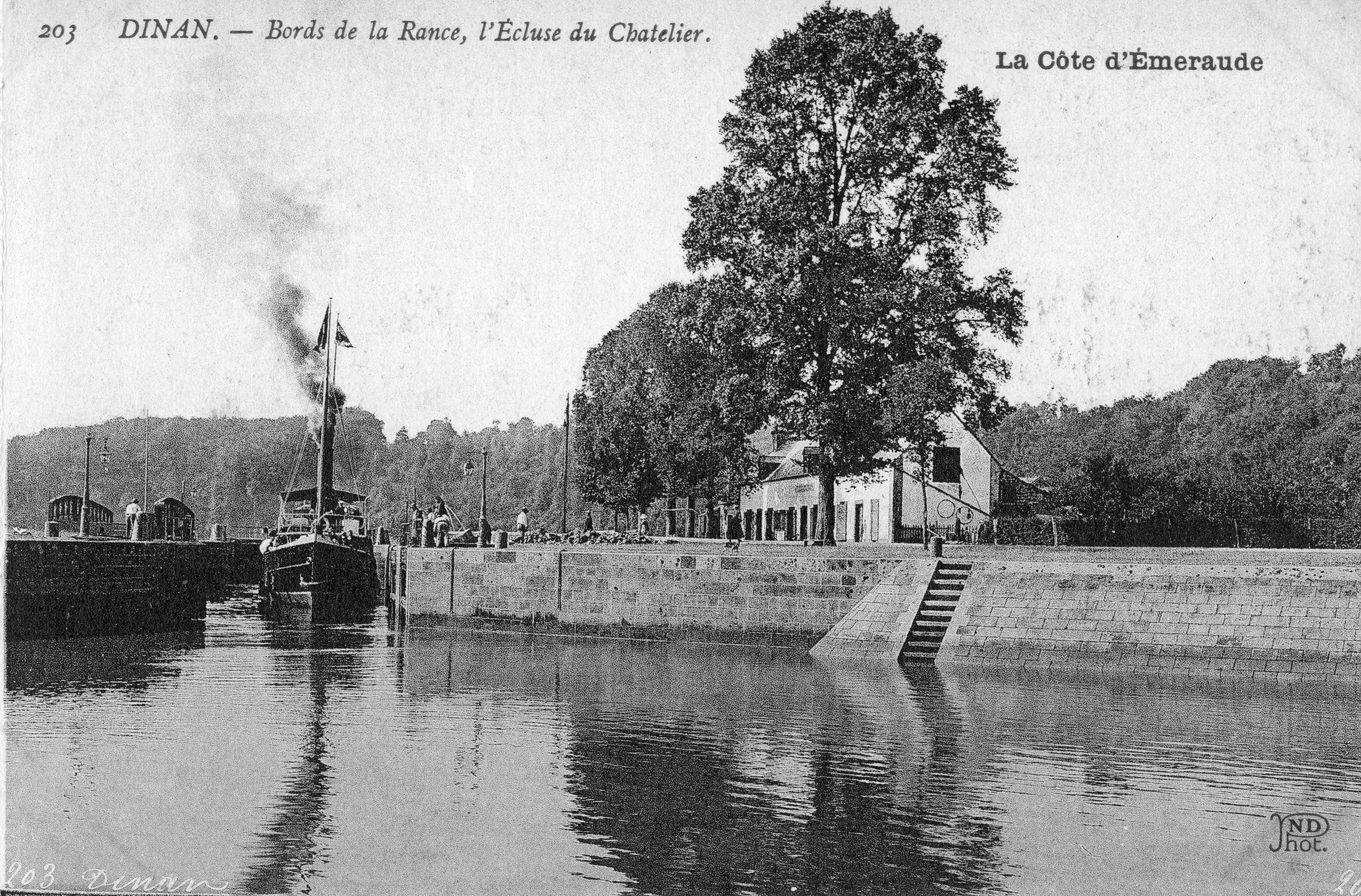 "Bords de la Rance, l’écluse du Châtelier", carte postale.Immatriculation