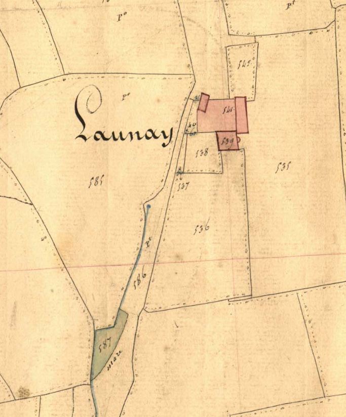 Cadastre de St Samson, section B, 3e feuille, détail : la demeure de Launay.Immatriculation