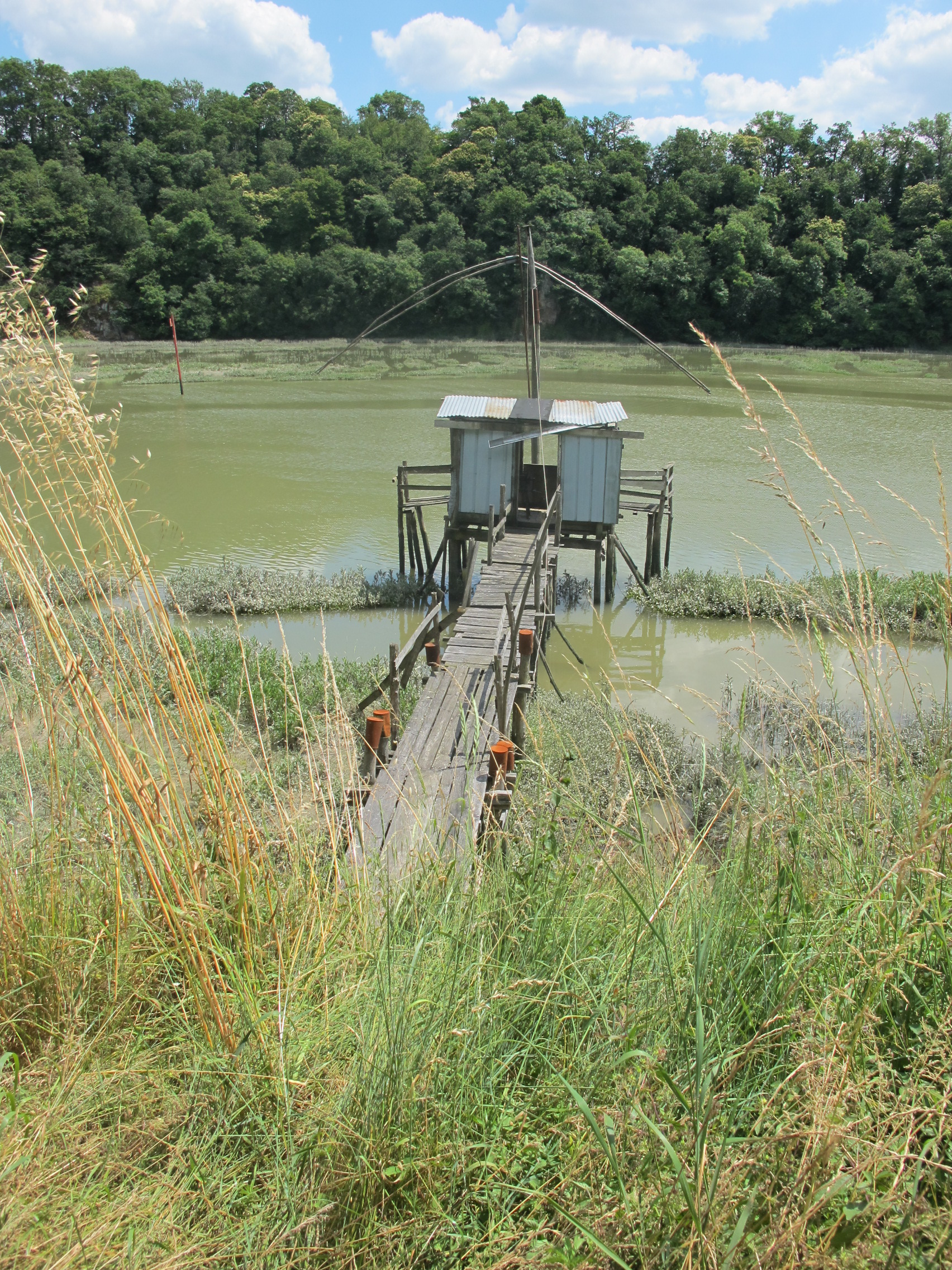 Cabane de carrelet, vue du bord de Rance.Immatriculation