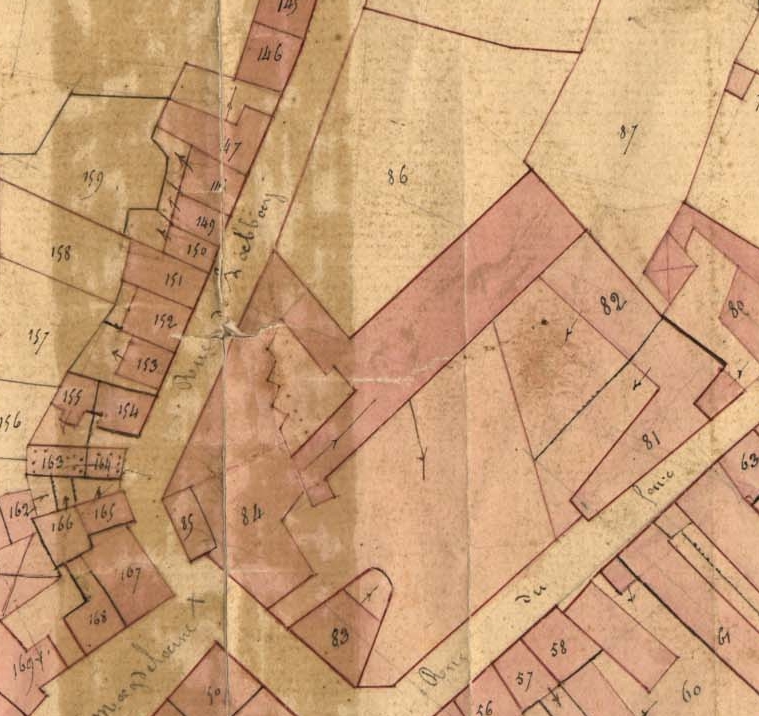 Extrait du cadastre de 1844, Implantation de l'auberge de la Croix Verte, parcelle 84Immatriculation