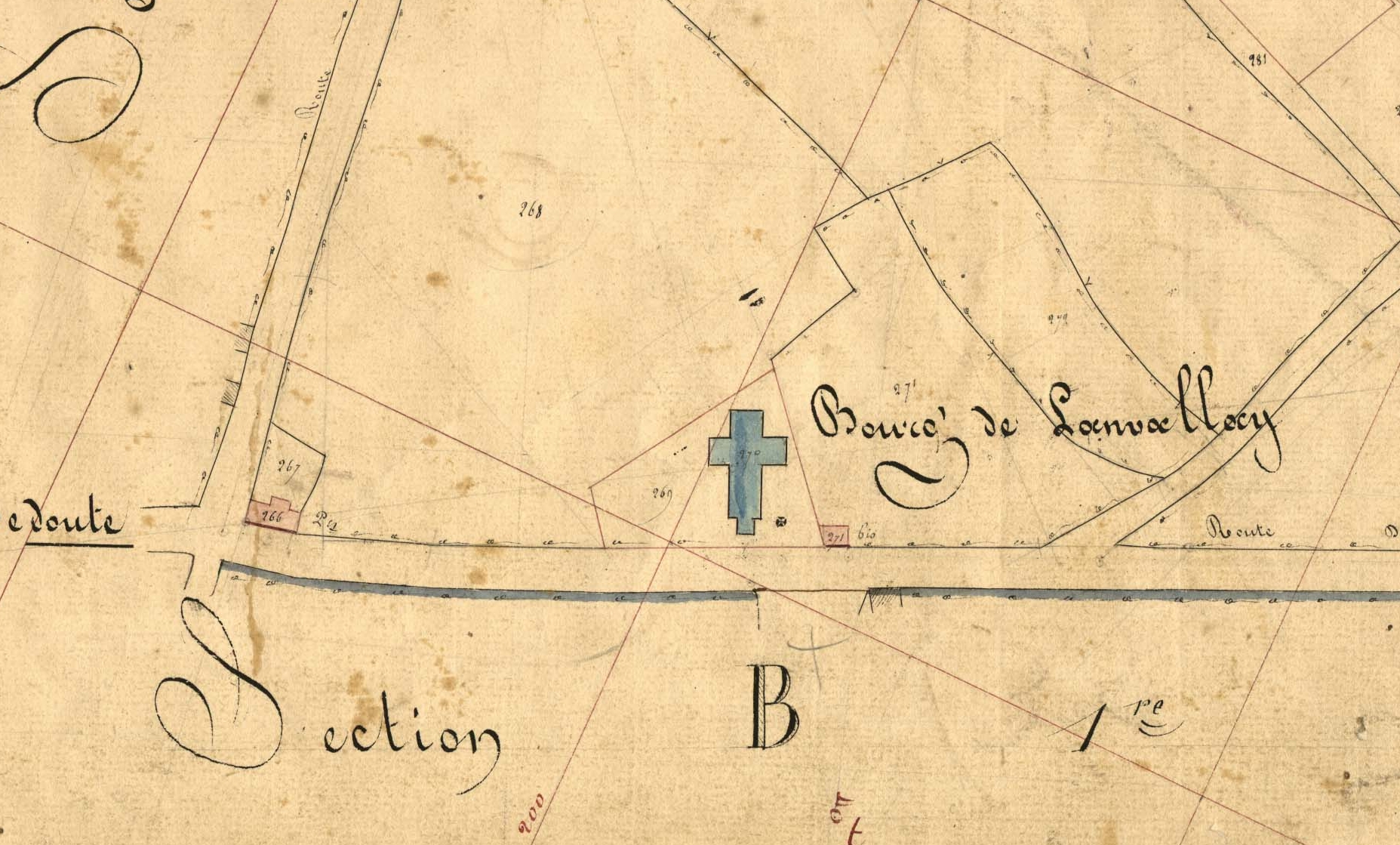 Extrait du cadastre de 1844, implantation projetée du nouveau bourgImmatriculation