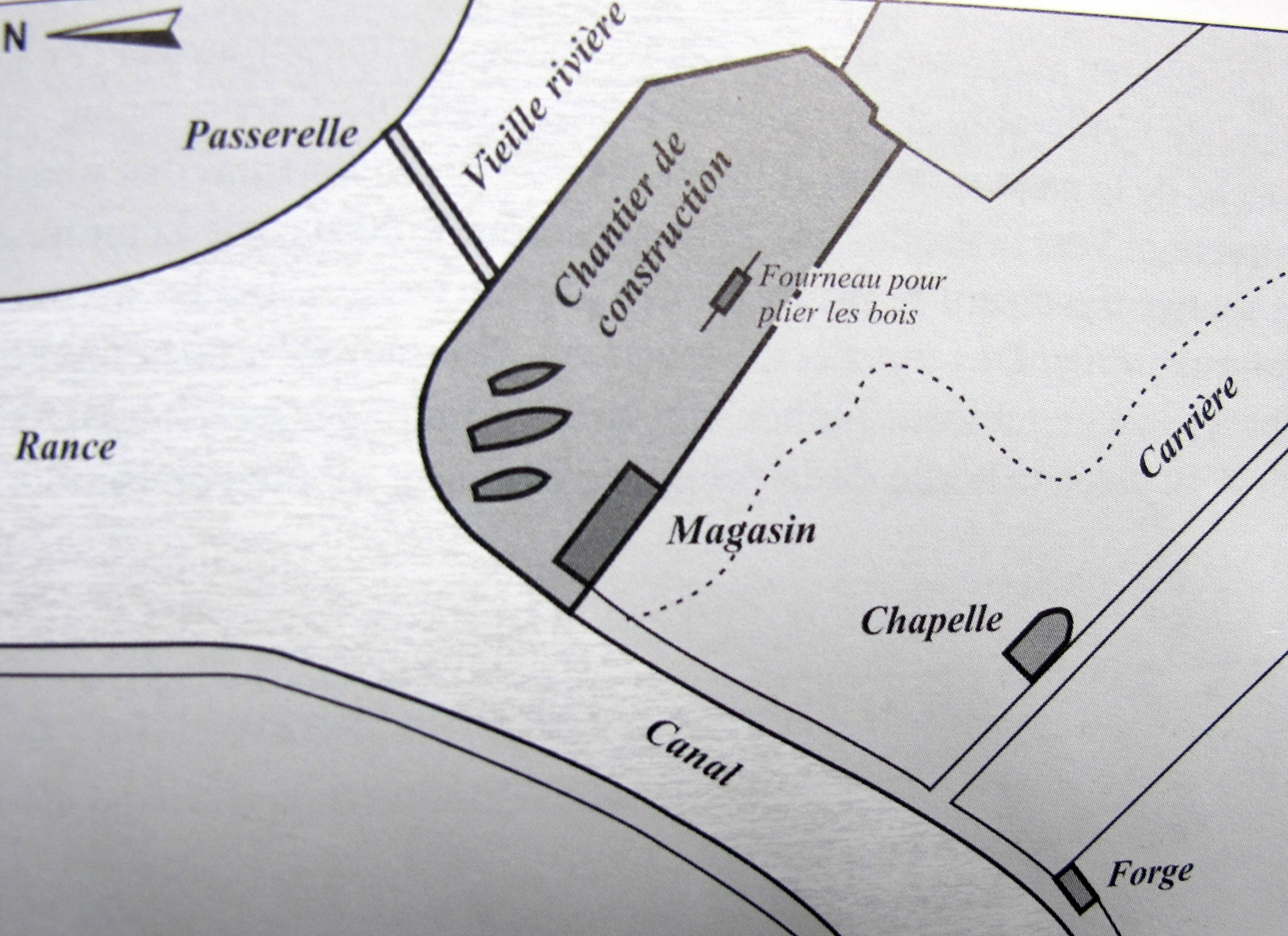 Chantier de construction sur l'ile de la Courbure vers 1840, schéma par René NicolasImmatriculation