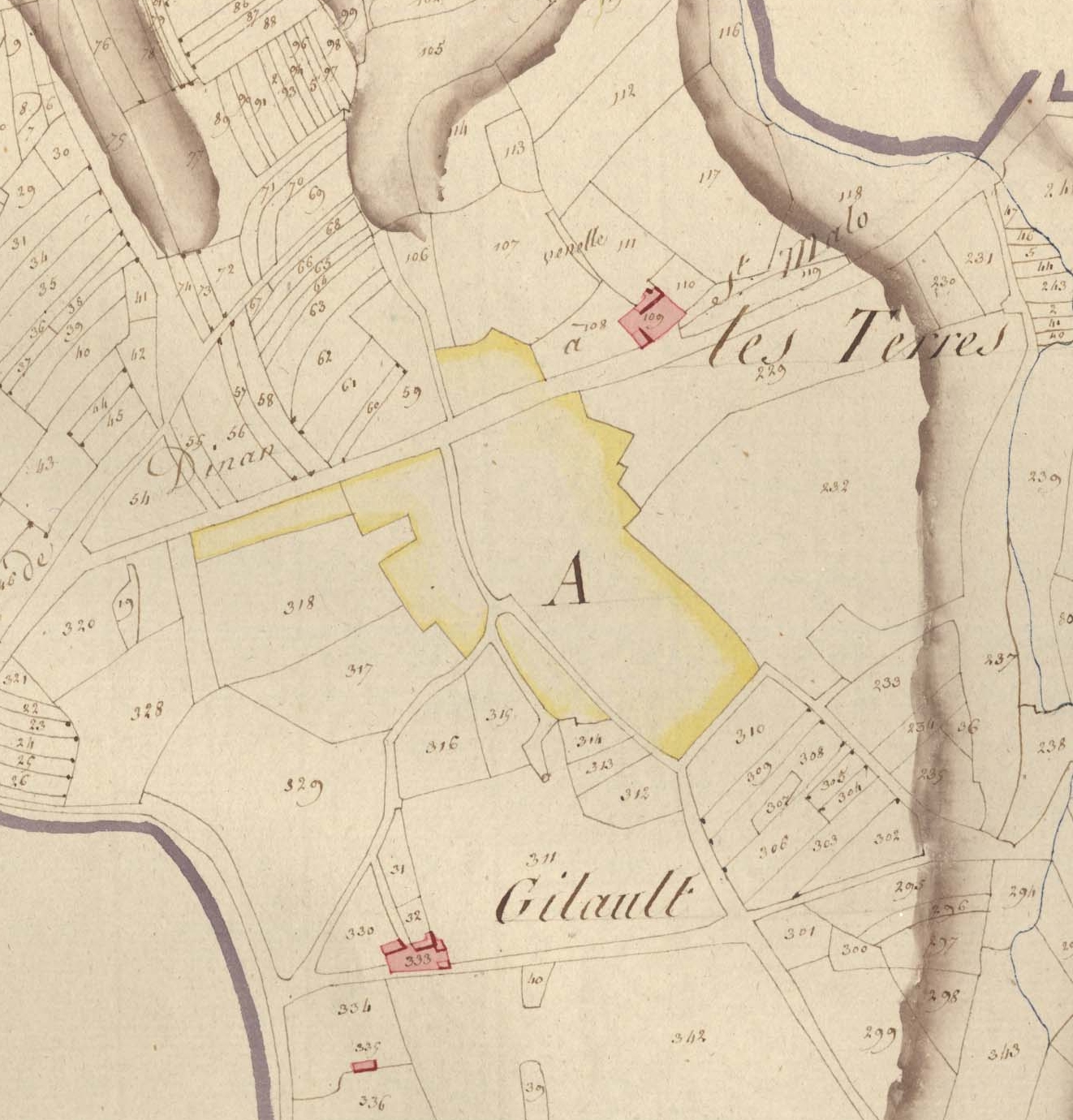 Implantation sur le cadastre de 1811, du manoir dit les Terres, à l'est de l'écartImmatriculation