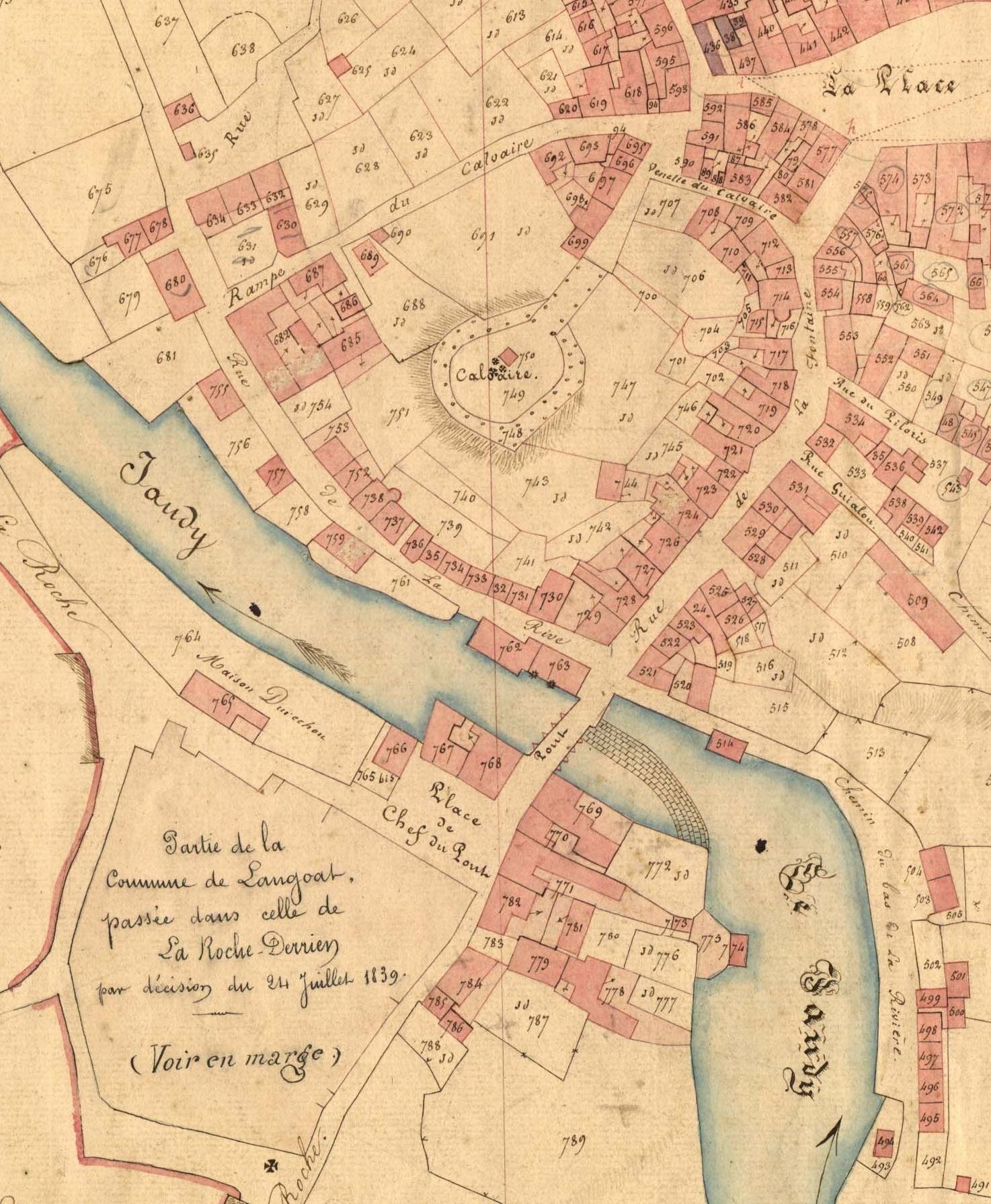 La rue de la rive en 1836. Extrait du cadastre ancien (A.D. 22, série 3 P)Immatriculation