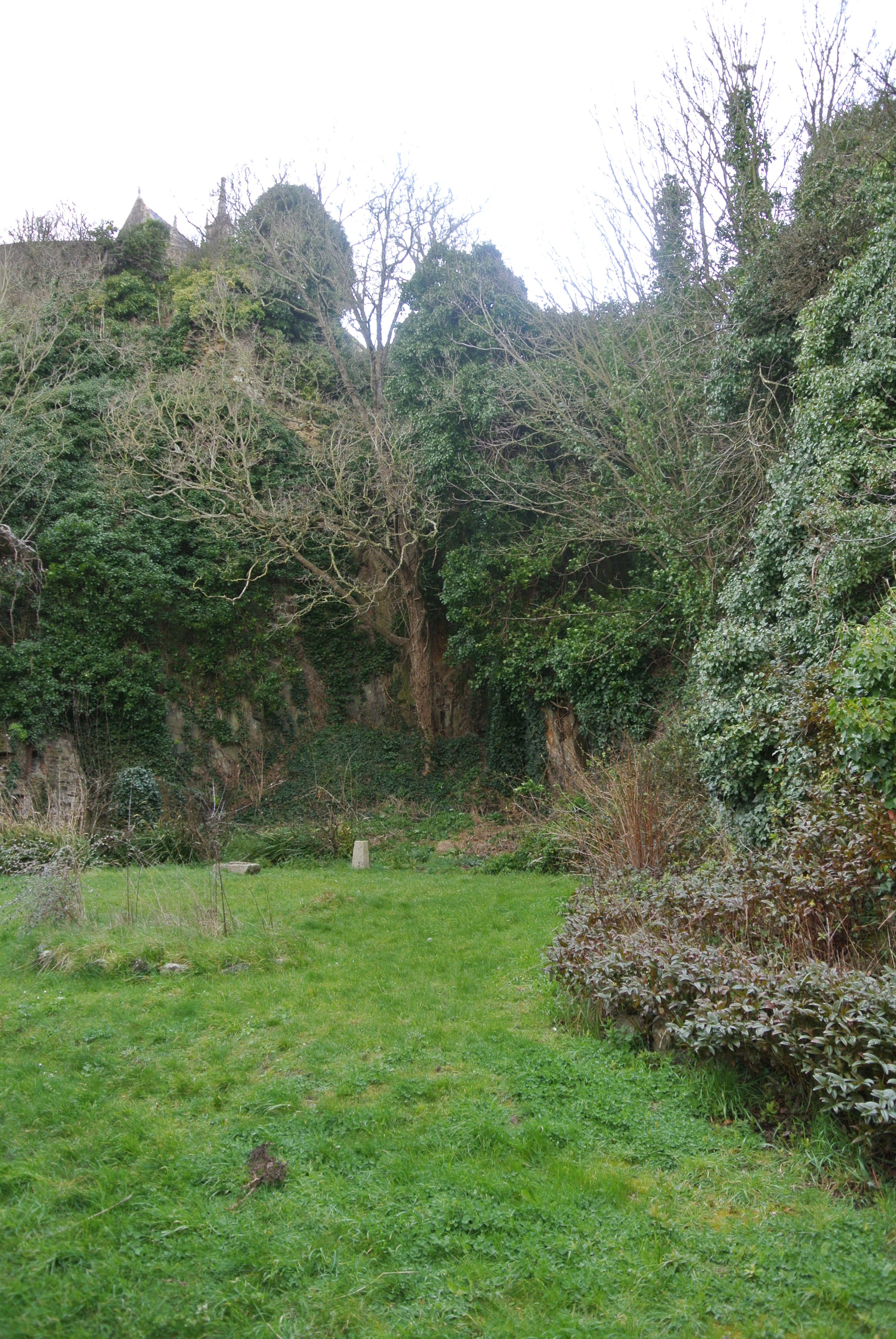 Ancienne carrière de schiste envahie par la végétation constituant le fond du jardinImmatriculation