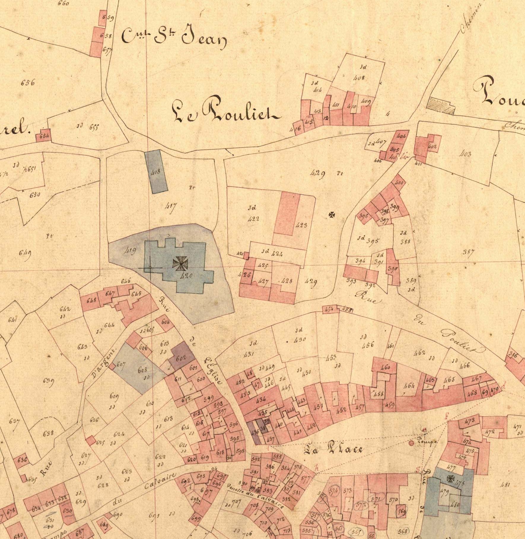 Place du pouliet en 1836. Extrait du cadastre ancien (A.D. 22, série 3 P)Immatriculation