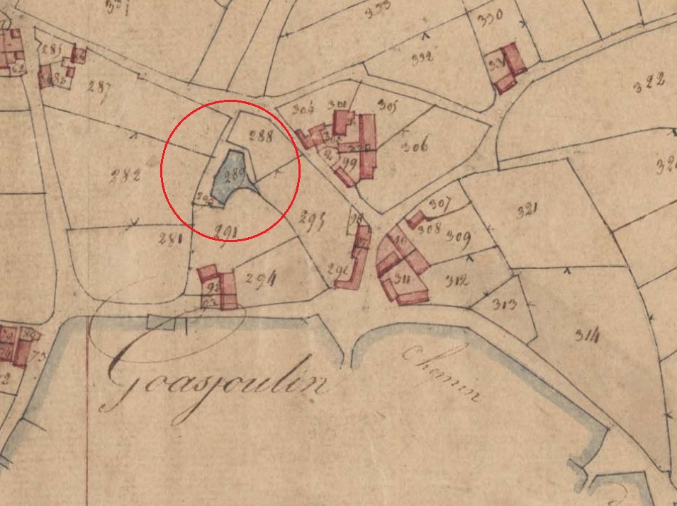 Extrait du plan du cadastre ancien de la commune de Plouézec (parcelle n°A289)Immatriculation