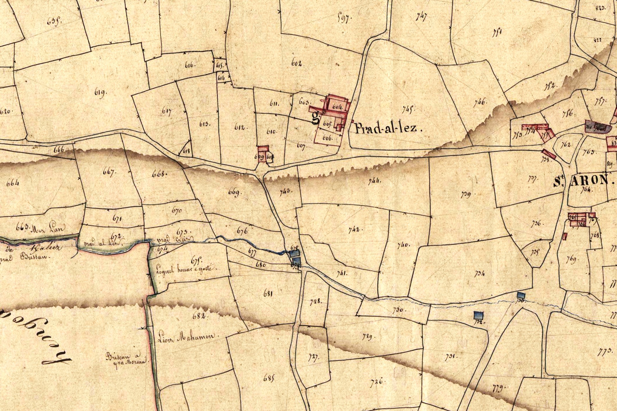 Extrait du plan du cadastre napoléonien de la commune de Pleumeur-Gautier (parcelles n°D678 et 679)Immatriculation