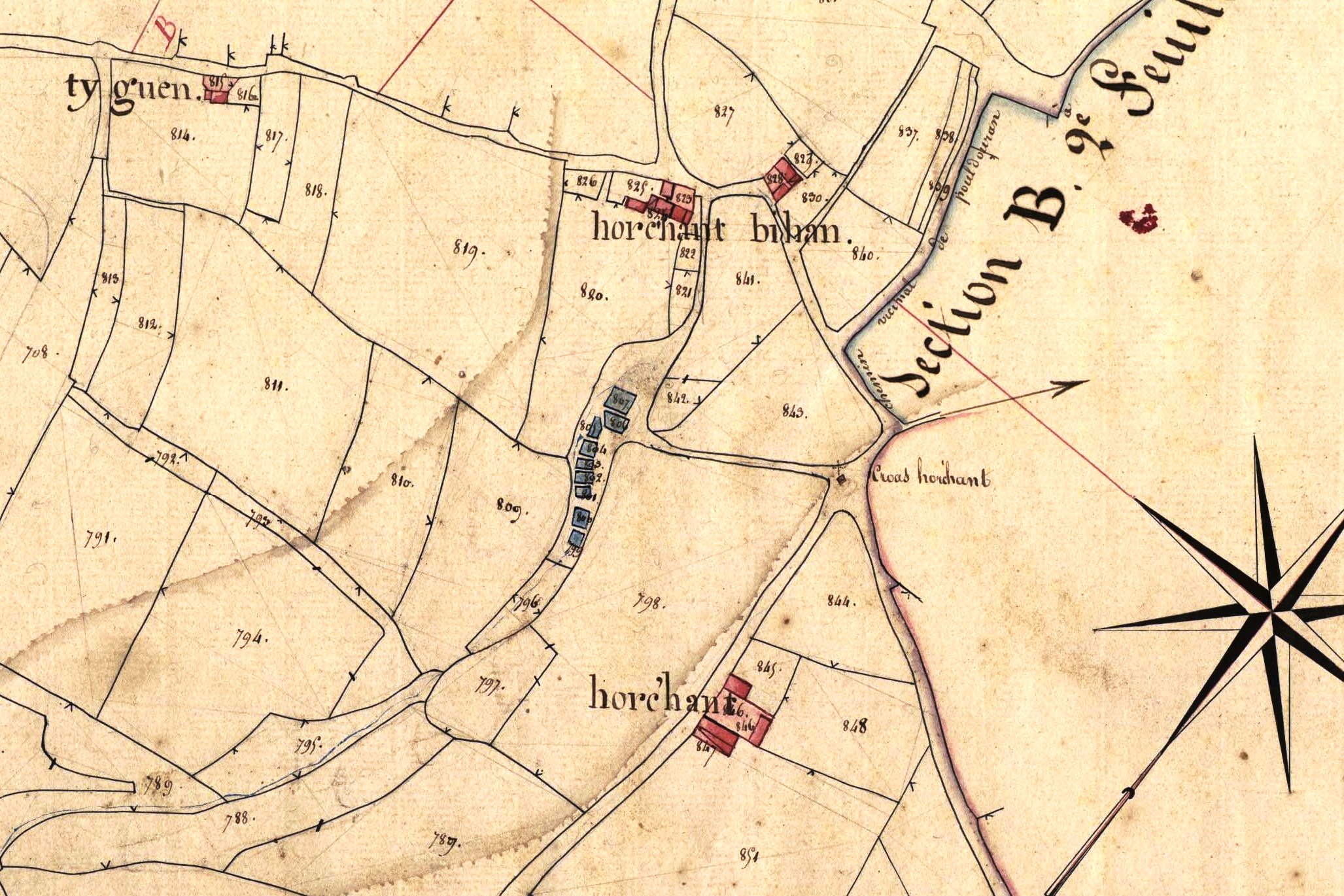 Extrait du plan du cadastre napoléonien de la commune de Trédarzec (parcelles n°C799 à 807)Immatriculation