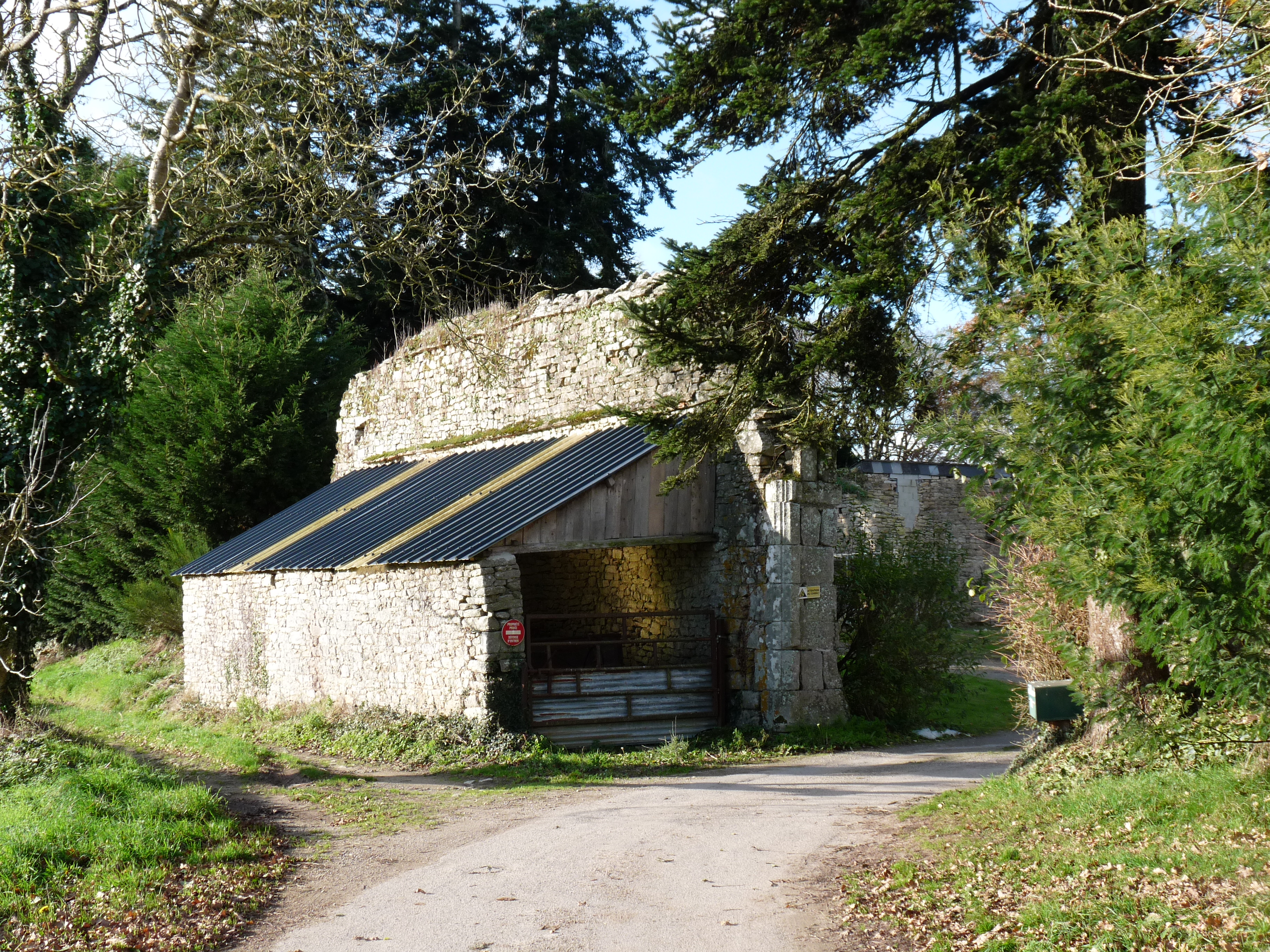 Vue du pilier d'entrée mouluré et du mur de clôture sud, prise du sud-estImmatriculation