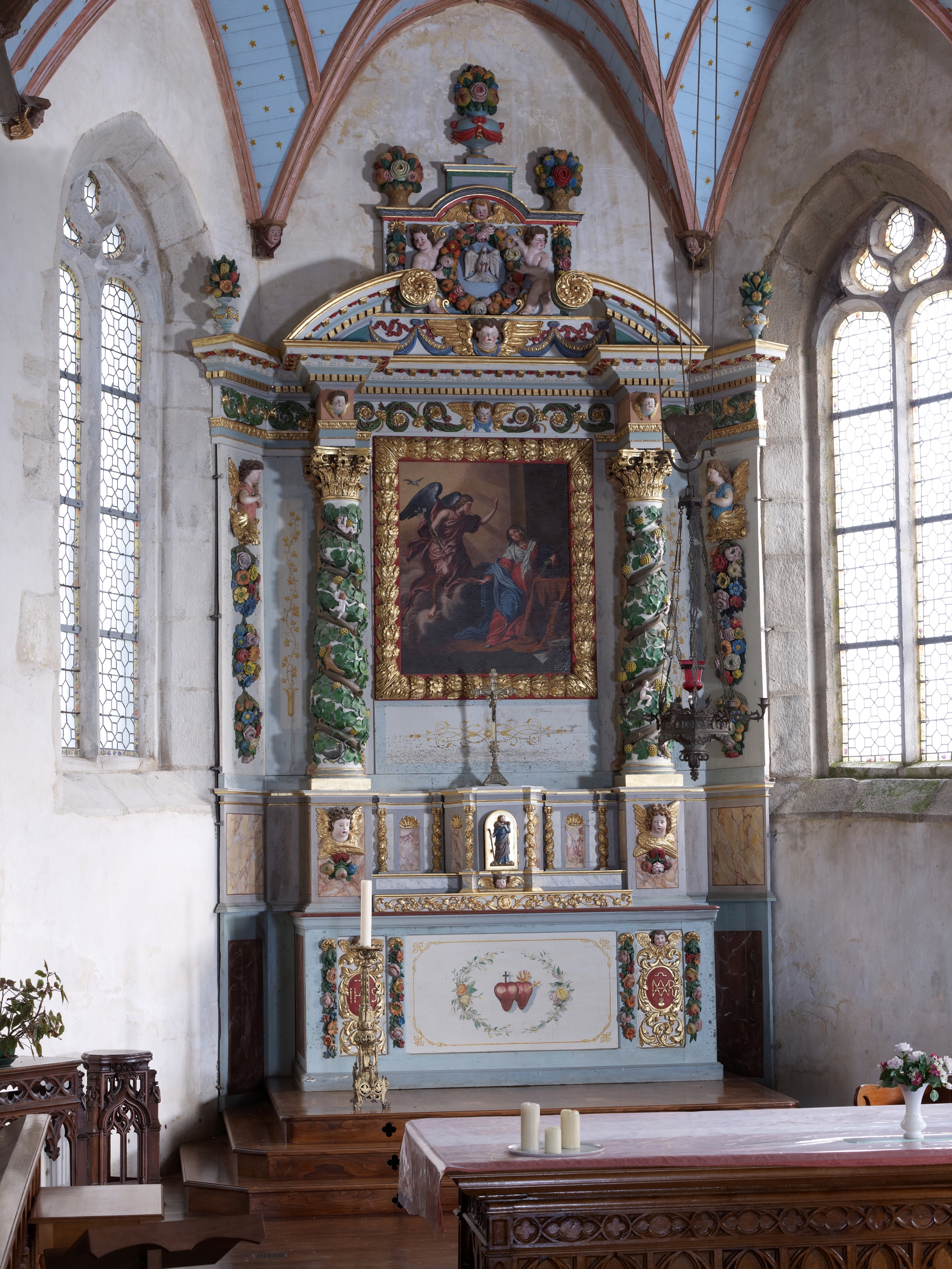 Maître-autel, tableau d'autel, tabernacle (bois peint, polychrome, doré)Immatriculation