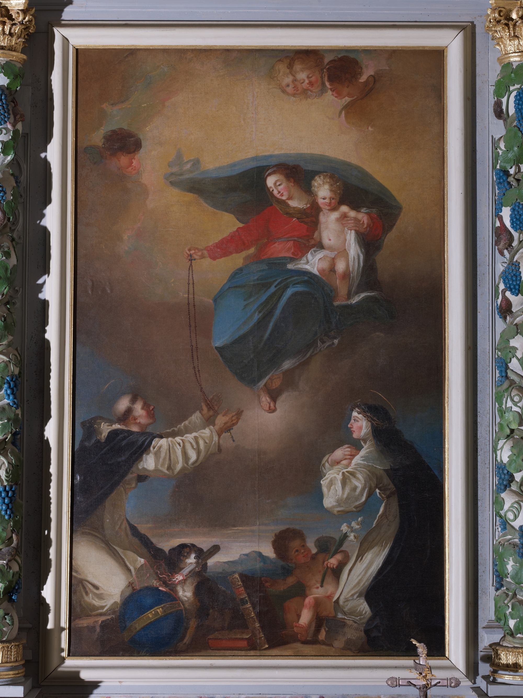 Tableau "Donation du Rosaire", signé Valentin, daté 1776 (1991/11/14 CMH)Immatriculation