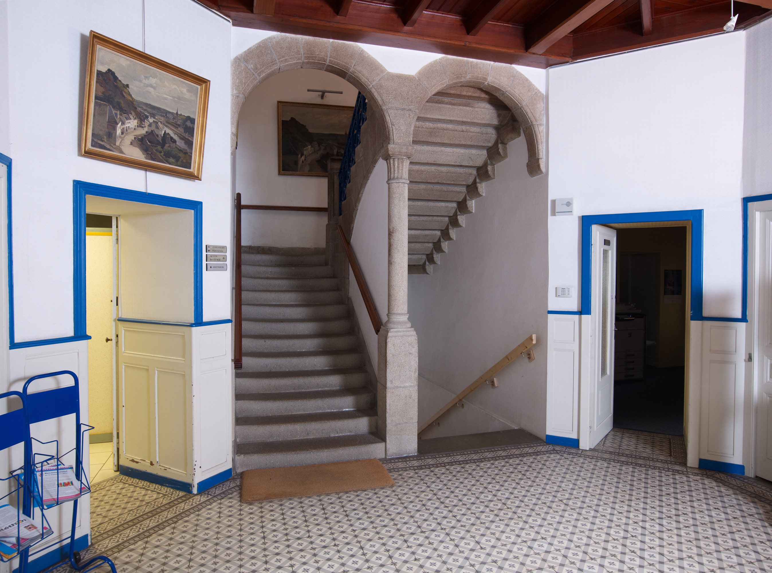 Mairie, vue intérieure du hall et des escaliers en graniteImmatriculation