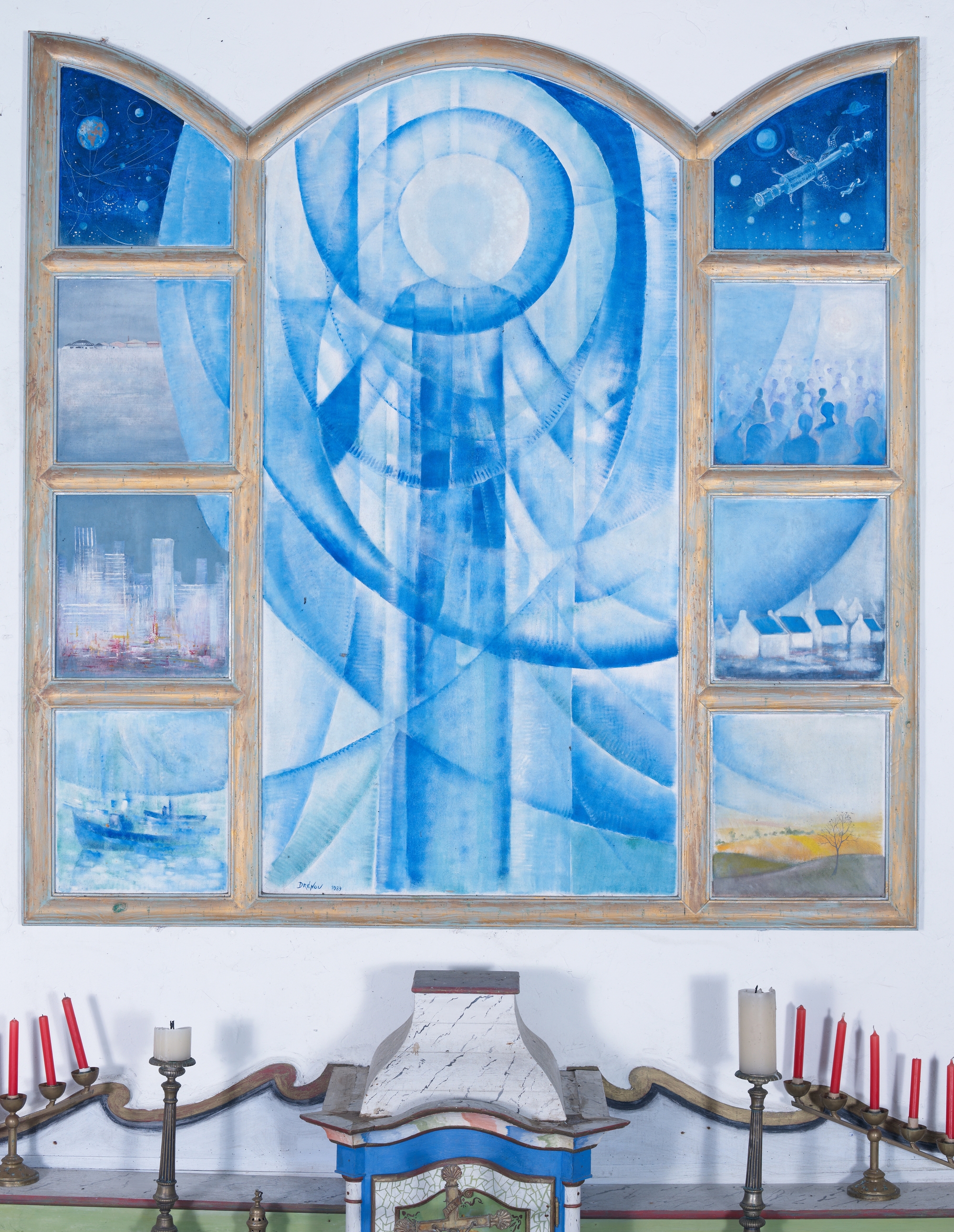 Tryptique représentant : Conquête de l'Espace.Immatriculation