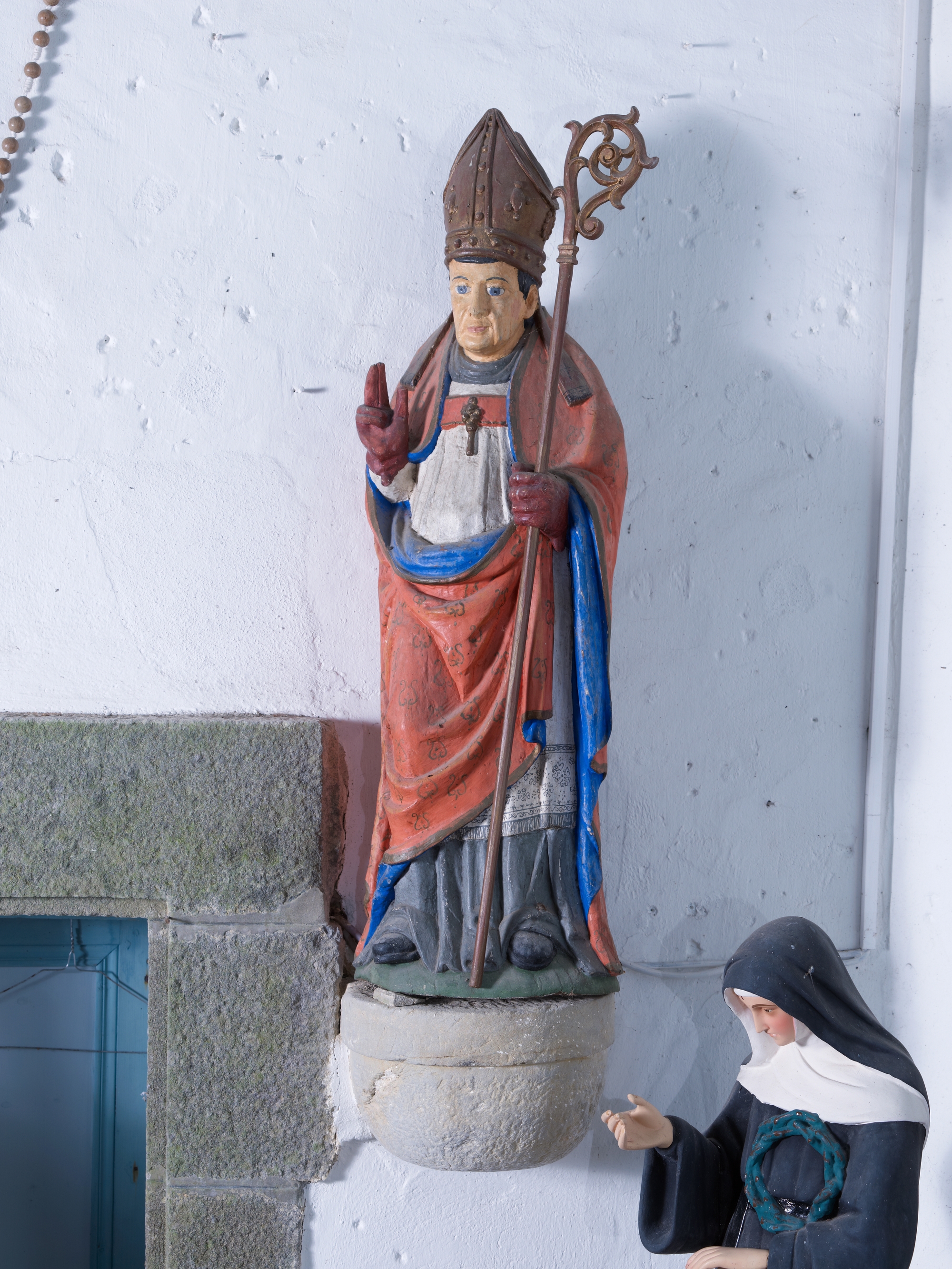 Statue Saint Evêque (bois polychrome, 17e 18e)Immatriculation