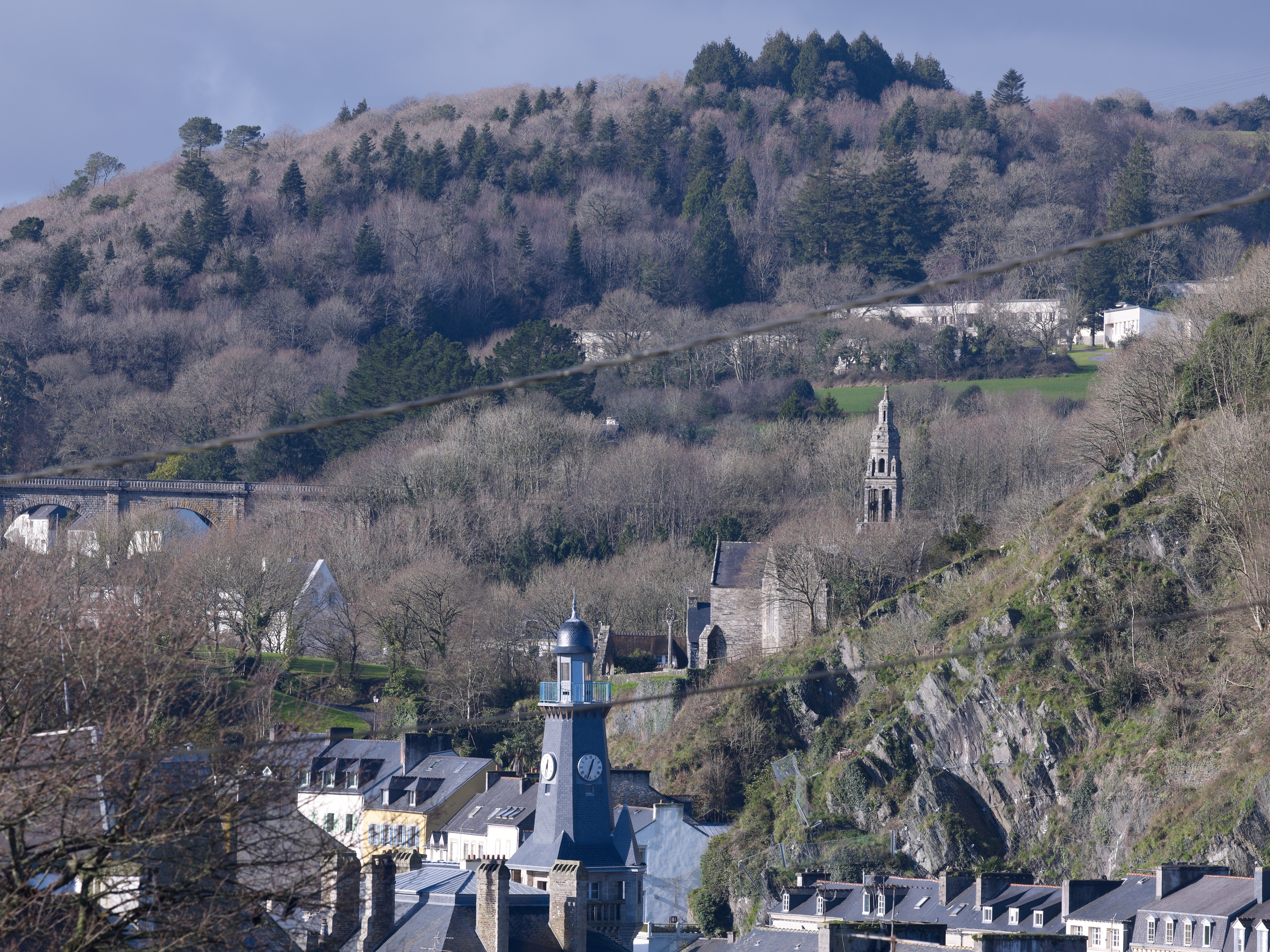 Vue générale du clocher de Notre-Dame et beffroi de la mairie.Immatriculation