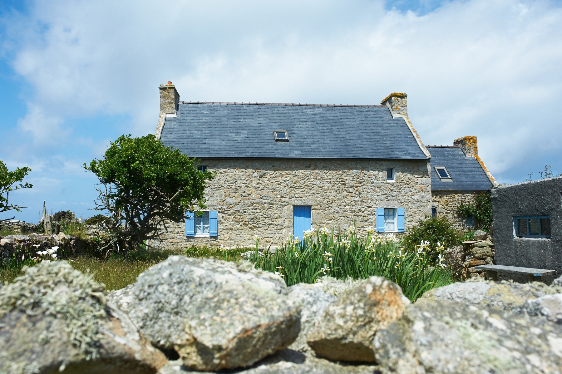 Ru-Locqueltas : maison ancien étage de comble aéré par petite fenêtre (absence fenêtre centrale)Immatriculation