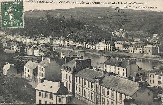 Carte postale, Vue d'ensemble des quais, Col. E. H. Cliché Le Doaré (groupe scolaire au premier plan)Immatriculation