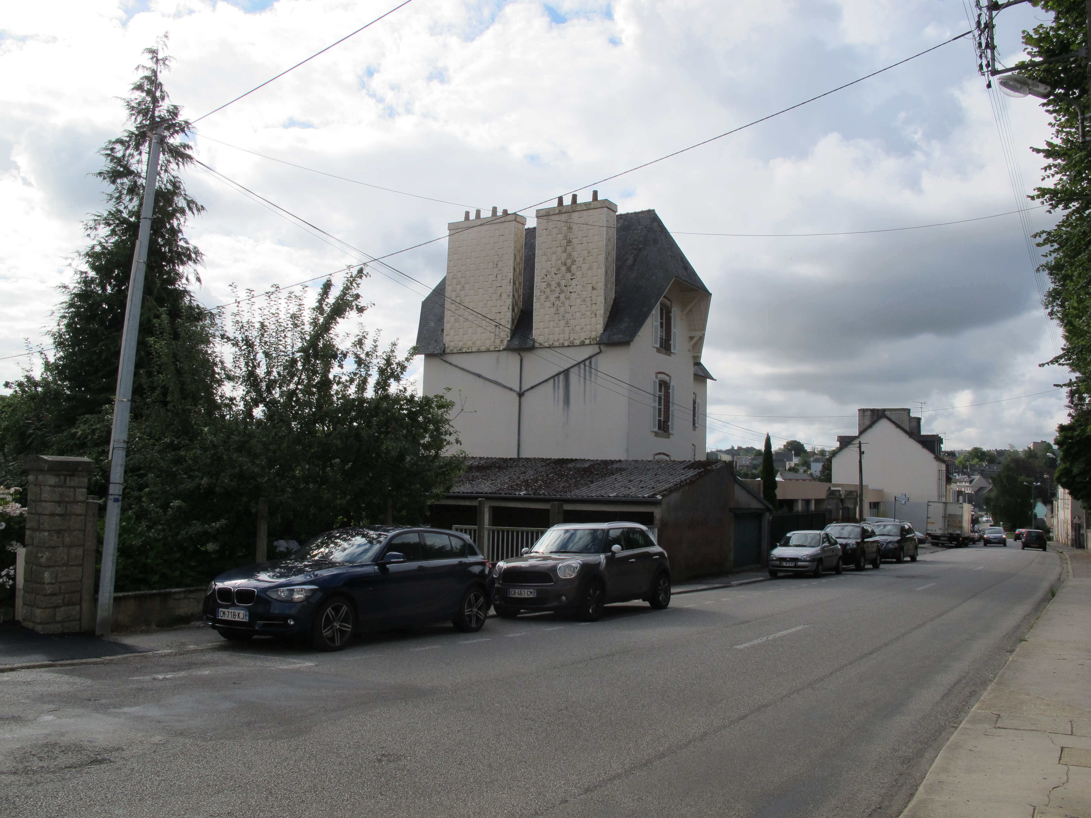 Vue générale vers le sud ; n°22, rue Amiral Bauguen (double souche de cheminées)Immatriculation