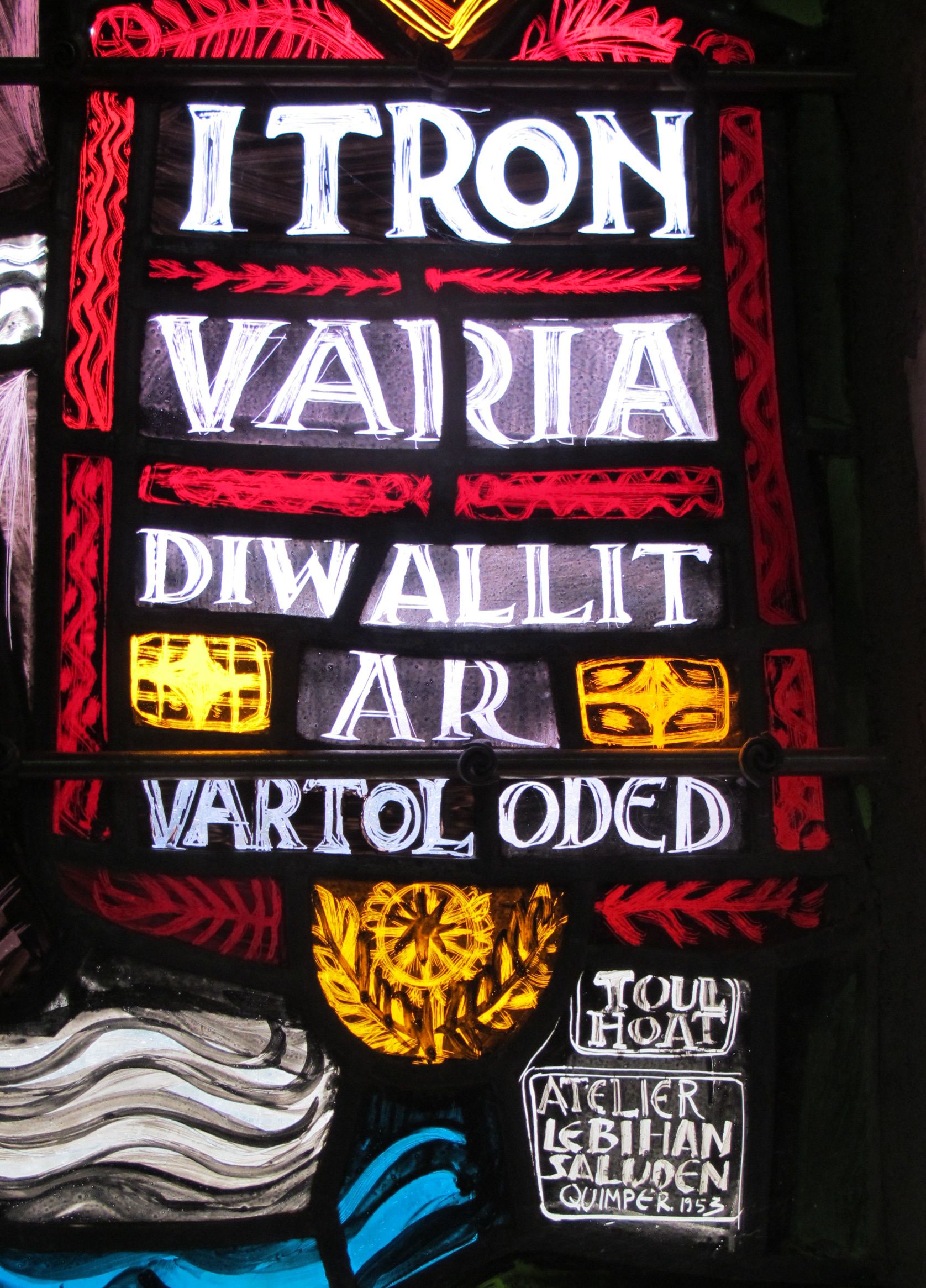 Détail de la baie précédente. Signature Toulhoat/atelier Le Bihan-Saluden, 1953Immatriculation