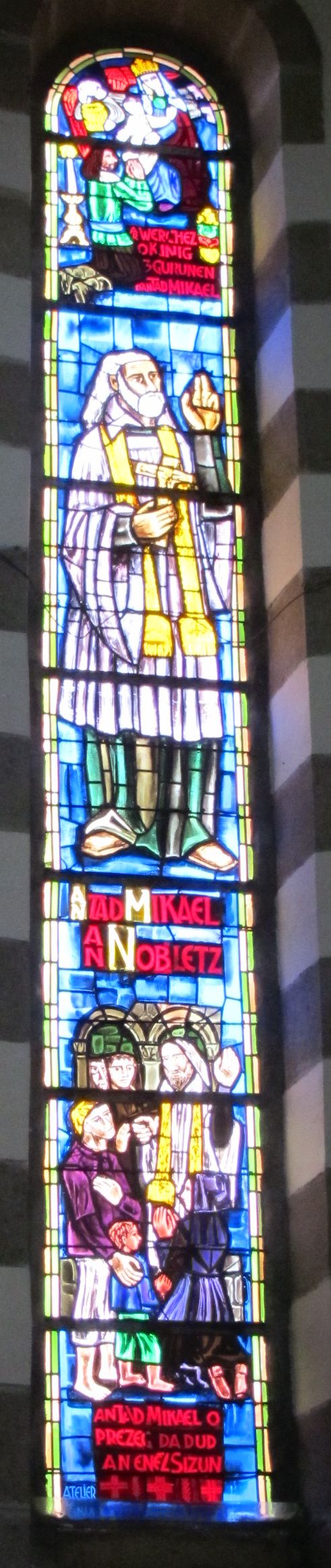 Verrière 7 (verrière figurée, verrière à personnages) (baies 0 à 16), église paroissiale Saint-Collodan, Saint-Guénolé (île de Sein),