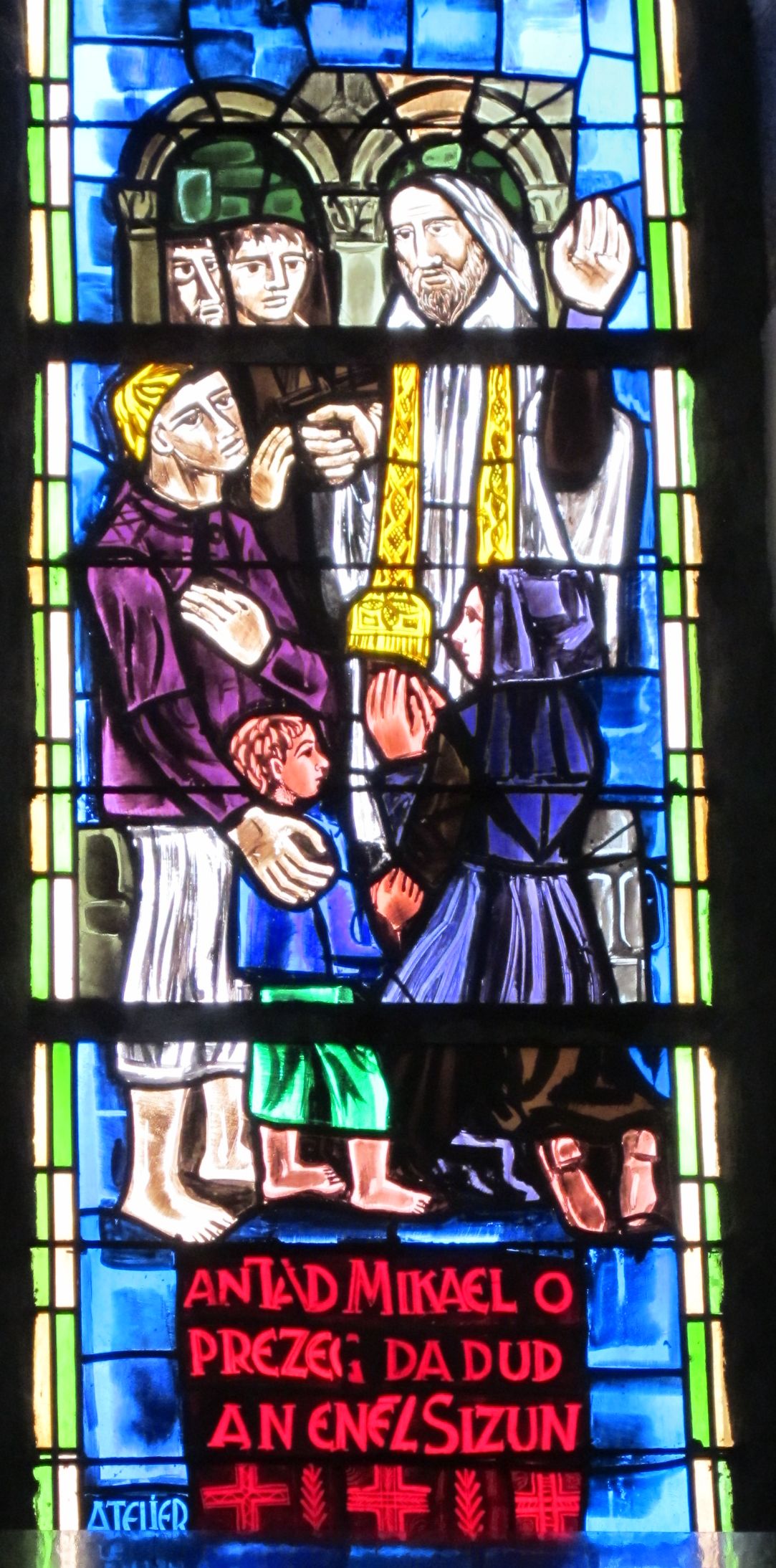 Verrière 7 (verrière figurée, verrière à personnages) (baies 0 à 16), église paroissiale Saint-Collodan, Saint-Guénolé (île de Sein),