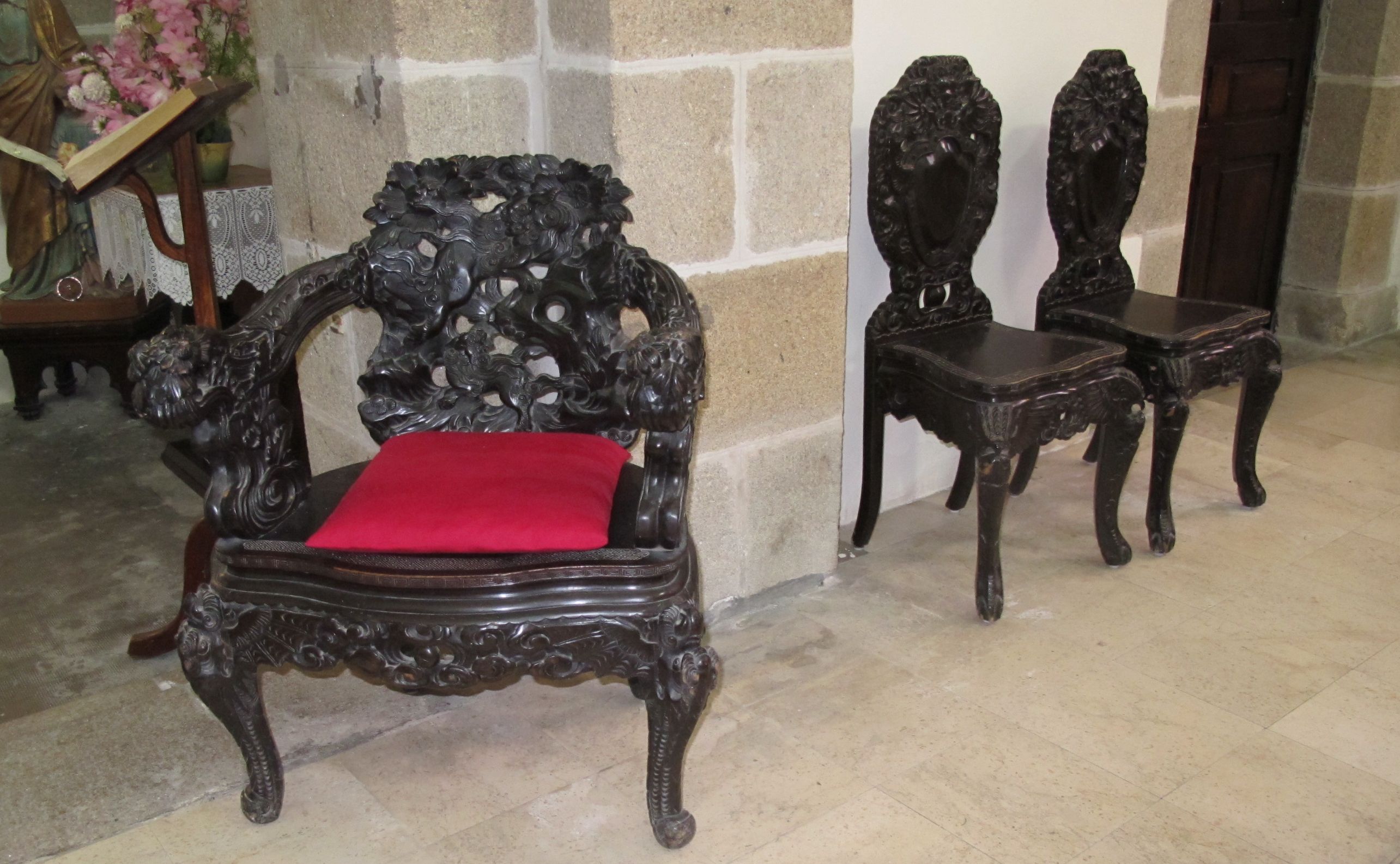 Ensemble de trois chaises, 2e moitié 19e siècle, origine Ceylan.Immatriculation