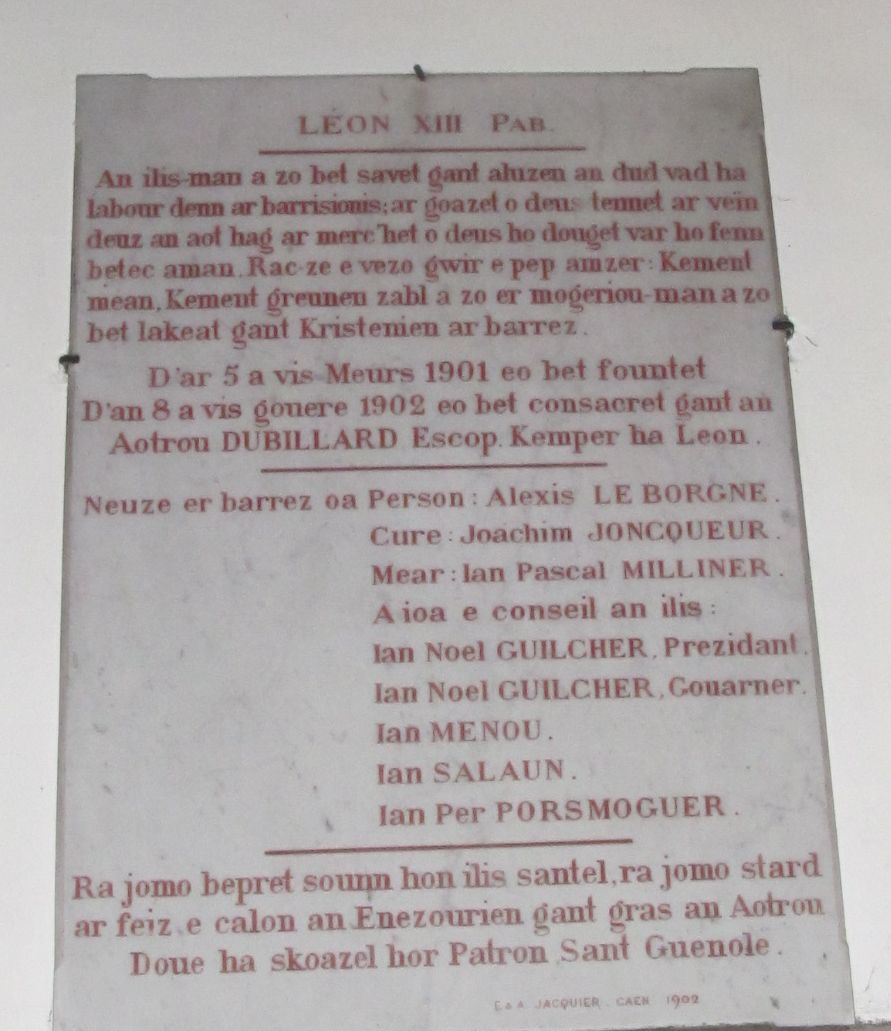 Plaque de bénédiction de l'église 1901, en bretonImmatriculation