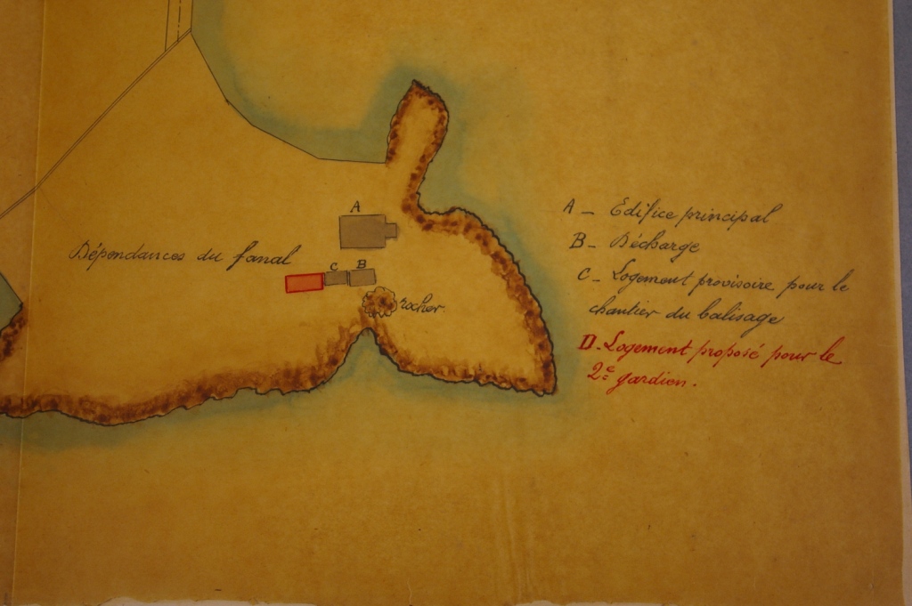 Carte de la Pointe sud est de l'île aux Moutons. Implantation du phare, 1875Immatriculation